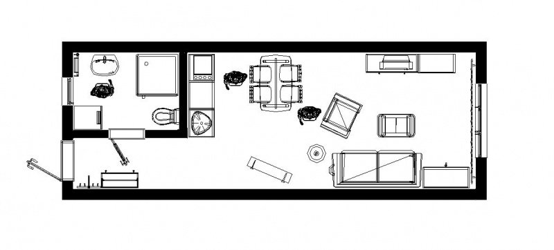 Comprar una casa pequeña no es un problema para crear la máxima comodidad de vida. El diseño correcto de un estudio es de 26 metros cuadrados. m garantizará el equipamiento práctico de cada sección de la sala. Elimina el uso de divisores voluminosos y paredes falsas. Con especial atención se seleccionan acabados, estilística, relleno de muebles. Los materiales de acabado deberían ayudar a crear ligereza. Por lo tanto, su categoría de precio no tendrá un papel especial. Pero el esquema de color tiene limitaciones: no debe incluir más de 4 colores. Es mejor limitarse a 2 tonos básicos y sus tonos claros y ligeramente oscuros. Un enfoque inteligente para elaborar un plan de vivienda y elegir muebles, la decoración eliminará las restricciones de espacio. Después de todo, si lo desea, se divide en 3-4 partes. Una planificación adecuada permitirá el uso racional de cada rincón de la habitación.