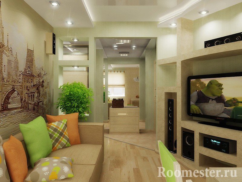 es mejor negarse a usar colores brillantes saturados en el diseño: reducen visualmente el espacio, haciendo que su hogar se vea pequeño y estrecho. Como acentos brillantes en el diseño del apartamento, use almohadas, pinturas, fotos y recuerdos;