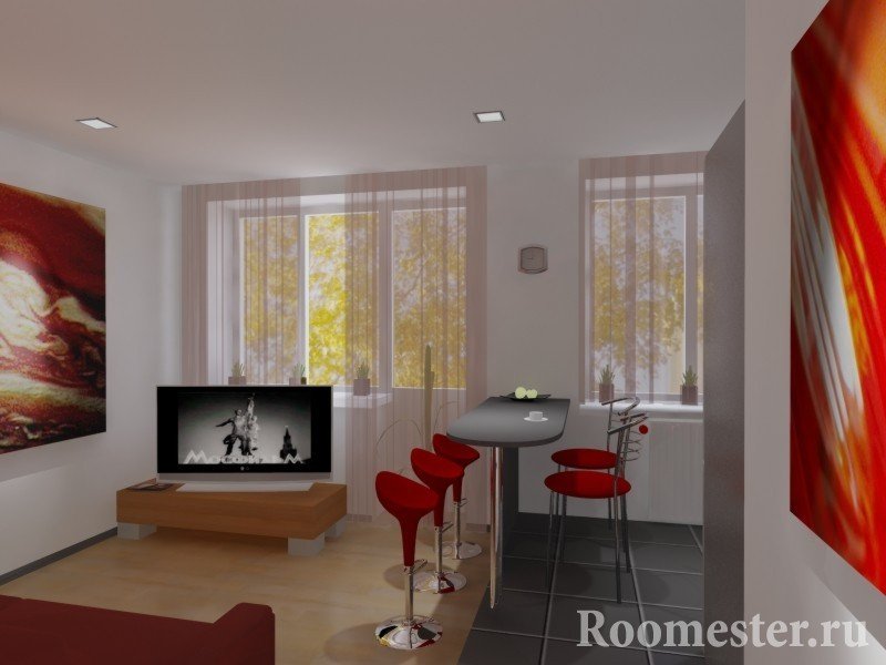 Además, puede crear el efecto del espacio expandiendo las aberturas de las ventanas. Al reemplazar las ventanas viejas con ventanas modernas de doble acristalamiento, mejorará el aislamiento térmico de sus apartamentos, y las ventanas espaciosas dejarán entrar la luz solar y el aire. El alféizar de la ventana es fácil de convertir en una mesa compacta integrada. Puedes ver cómo se ve en una foto de Internet.