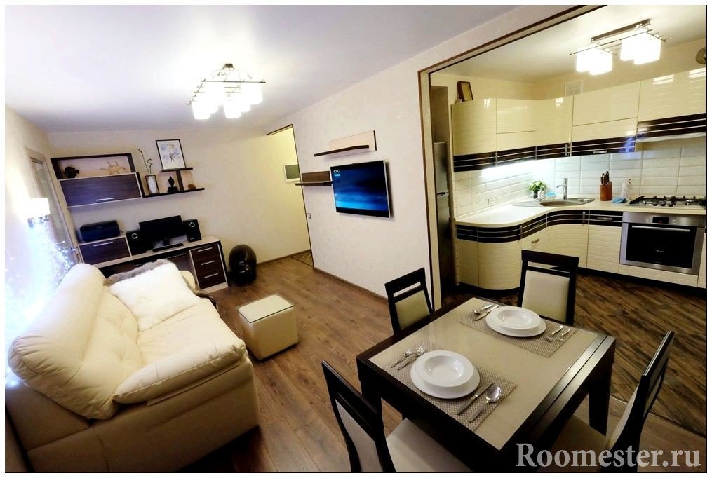 "Chaleco": una habitación espaciosa más dos pequeñas. La opción menos conveniente para la reestructuración radical;