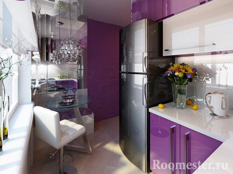 una cocina pequeña parecerá más espaciosa si usa superficies espejadas, por ejemplo, un refrigerador y gabinetes.