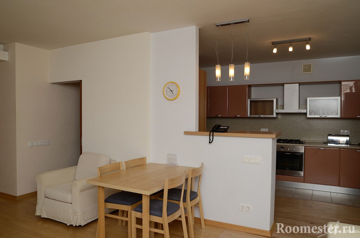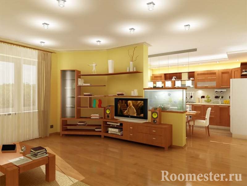 En presencia de una estufa de gas, la combinación de cocina y sala de estar está prohibida. Coloque una estufa eléctrica o use una partición liviana.