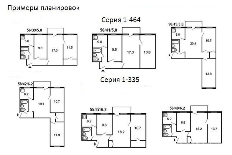 Hay varias versiones del diseño estándar de Jruschov de tres habitaciones:
