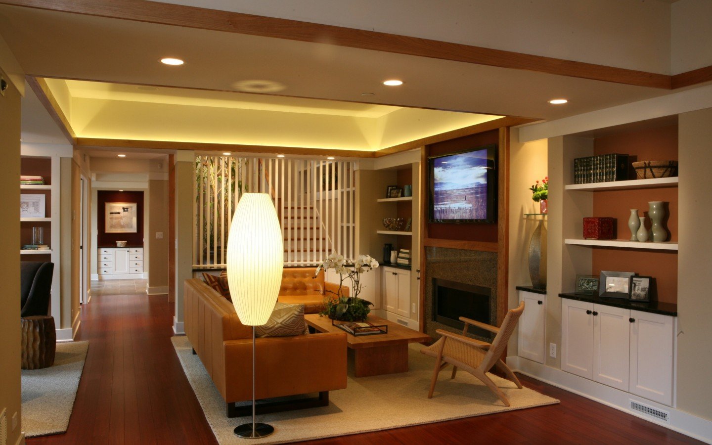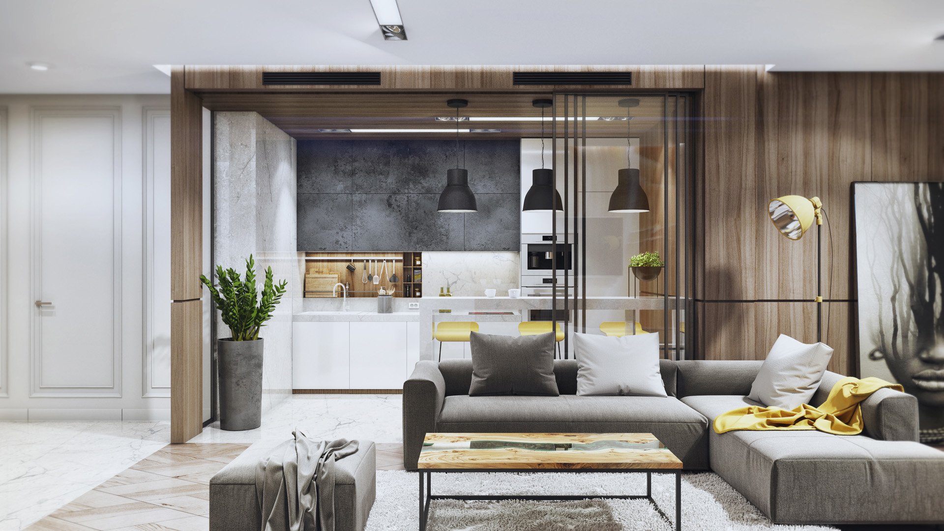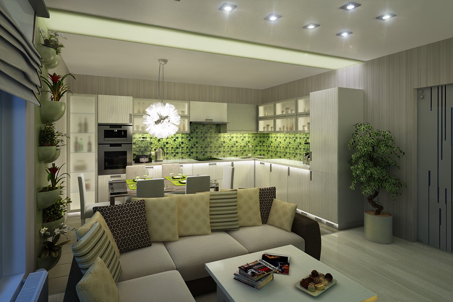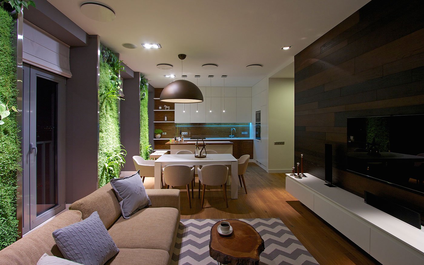 En apartamentos grandes, todos los accesorios de iluminación pueden integrarse en el sistema Smart Home y equiparse con sensores de movimiento. Es decir la luz en la habitación se encenderá solo cuando haya alguien en la habitación. Esto no solo es conveniente, sino también rentable, porque los niños, que corren de una habitación a otra, a veces se olvidan de apagar las luces, y ahora los interruptores inteligentes se encargarán del ahorro de energía real.