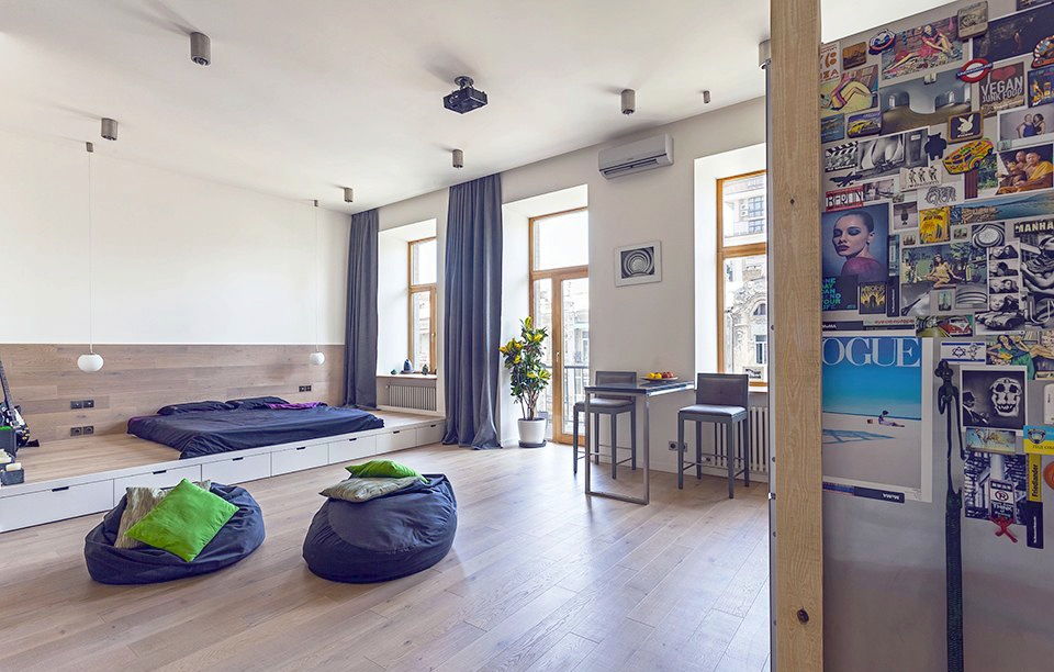En la nueva pantalla LCD hay apartamentos de dos niveles con dos baños. Los apartamentos en las casas de Stalin suelen tener una pequeña despensa rectangular, que los propietarios equiparán como vestuario. La remodelación adicional de las instalaciones depende de las preferencias personales de los propietarios y del número de miembros de la familia. Si solo dos personas (marido y mujer) vivirán en el apartamento, entonces una de las habitaciones se puede conectar a la cocina o al pasillo, creando un gran salón de estudio, que actúa como sala de estar y comedor.