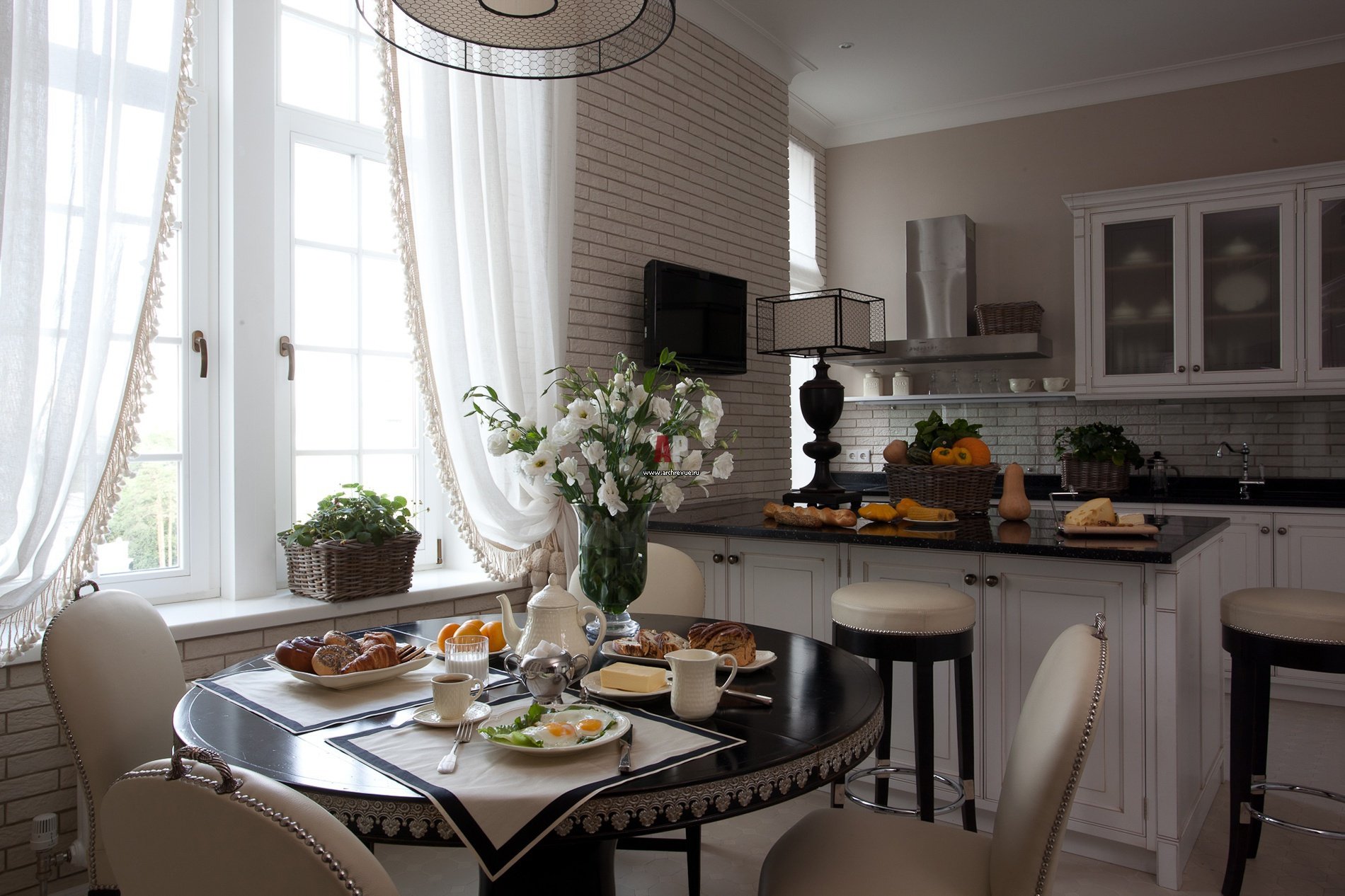 La cocina es una habitación funcional, que en los apartamentos tiene 80 m2, generalmente tiene un área grande. El color del juego de cocina debe estar en armonía con el interior de todo el apartamento. Si la carcasa está hecha en el estilo clásico, entonces un juego de madera maciza con un grupo de comedor hecho de materiales naturales (madera, cerámica, metal, etc.) es adecuado para la cocina. En una cocina de alta tecnología o minimalista, todos los utensilios de cocina se pueden ocultar en armarios colgantes o de piso. De los tonos para tales estilos, los colores cromo, beige y negro son adecuados. Es decir necesita recoger algunos chips y accesorios interesantes que coincidan con el proyecto de diseño. Pero la cocina debe ser hermosa y funcional al mismo tiempo. Todos los detalles decorativos deben ser útiles a su manera. Por ejemplo, en elegantes tablas de cortar, puede cortar pan o verduras, preparar un delicioso pilaf en un caldero antiguo original y cultivar plantas de interior en macetas interesantes en los alféizares de las ventanas.