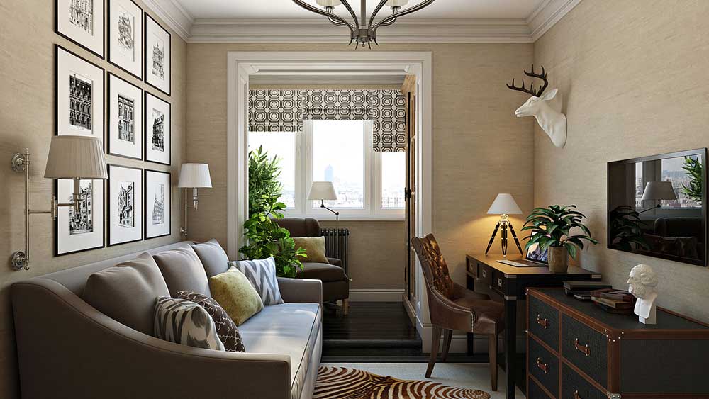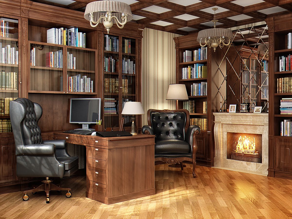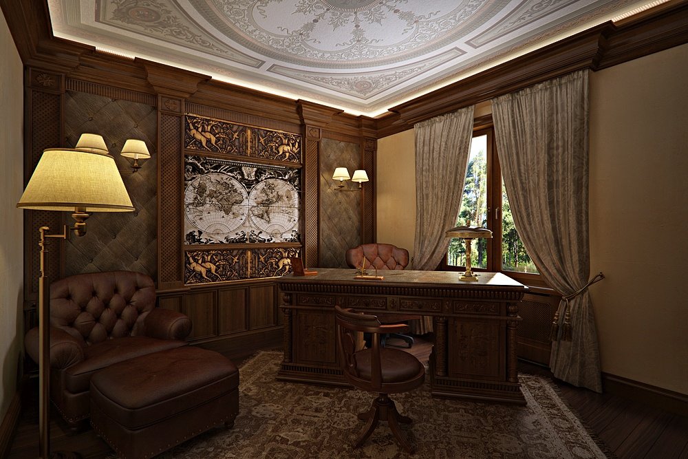 El gabinete en los apartamentos de tres habitaciones a veces está hecho en lugar de una guardería o sala de estar. Esto se hace cuando no hay niños, o cuando una gran cocina puede servir como sala de estar. Los apartamentos son de 80 metros cuadrados. Sucede con bastante frecuencia. Debajo de la oficina puede tomar la más pequeña de las tres habitaciones. Puede colocar un sofá suave o de cuero, pero no es una parte importante de la habitación. El énfasis principal en la oficina está en el lugar de trabajo: un escritorio (computadora) y una silla. Deben ser sólidos y multifuncionales. Se pueden colocar estantes con libros y documentos importantes a los lados de la mesa. Un gabinete a tiempo parcial puede desempeñar el papel de una biblioteca. Es mejor organizar una oficina en un estilo clásico y poner muebles de madera maciza, pero mucho depende de las preferencias personales del propietario.