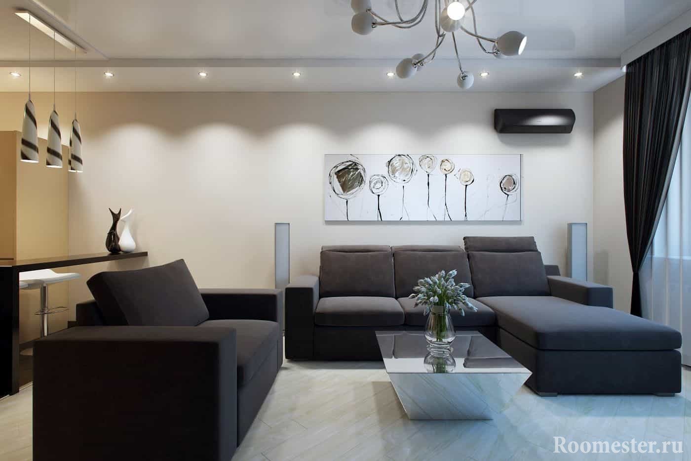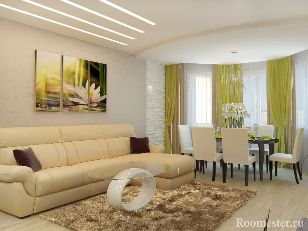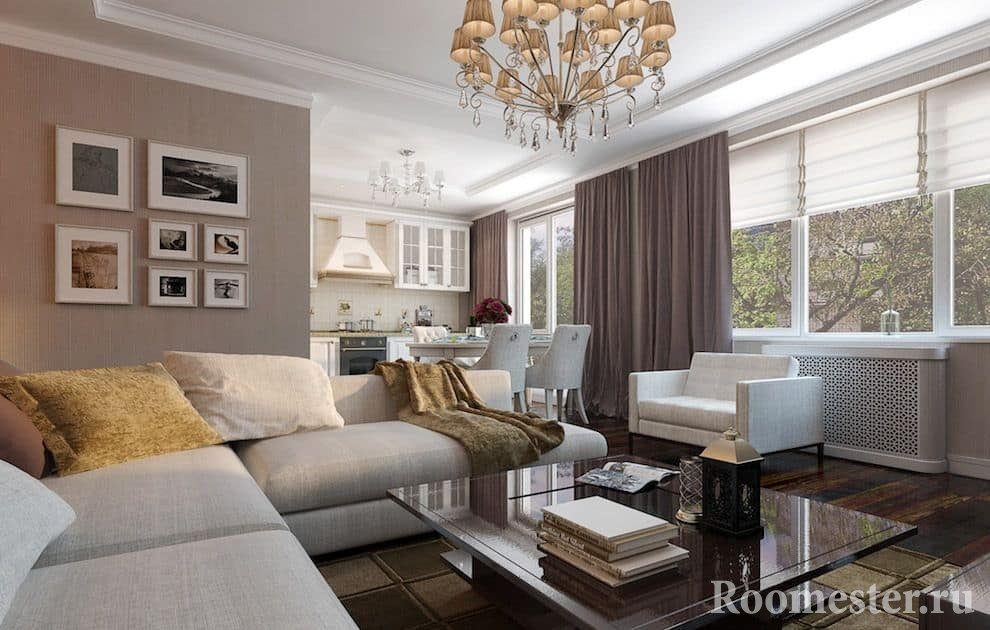 Hoy, al decorar un espacio, cada vez más personas intentan expandir visualmente sus habitaciones. Muchos propietarios de apartamentos dejan solo las particiones más necesarias. El estilo con espacios abiertos nos llegó de los países occidentales. Y hoy se lo encuentra a menudo en varios proyectos. Las únicas habitaciones que no deben combinarse con un solo espacio del apartamento son los baños y las habitaciones.