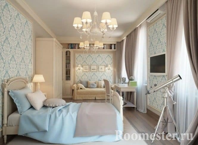 No es el último papel en el diseño del espacio la iluminación. Los candelabros, lámparas y otros dispositivos no solo son una fuente de luz, sino también una fuente del estado de ánimo correspondiente. En nuestro país, la iluminación natural en el período otoño-invierno no es suficiente, lo que afecta negativamente el estado general de las personas. Cada habitación debe tener su propia disposición de iluminación. En la sala de estar, puede restringirse a los focos. En cuanto a la habitación, aquí hay una iluminación adecuada de varios niveles.
