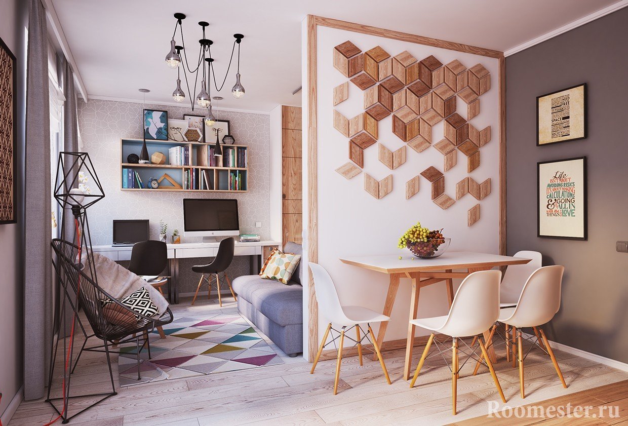 La zonificación es la técnica principal de los diseñadores decoradores. Le permite dividir visualmente el espacio en áreas funcionales separadas, sin afectar el estilo general. En apartamentos de una habitación, la zonificación es indispensable. Solo con su ayuda, un apartamento con una gran carga funcional puede ser cómodo y conveniente.
