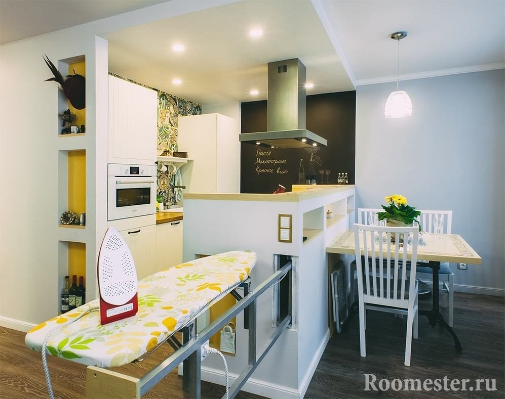 Los muebles transformadores multifuncionales le permitirán expandir el espacio de la habitación si es necesario.Como mínimo, puede ser un sofá cama, una mesa plegable en la cocina o una tabla de planchar afuera de la puerta.