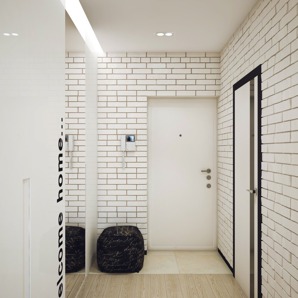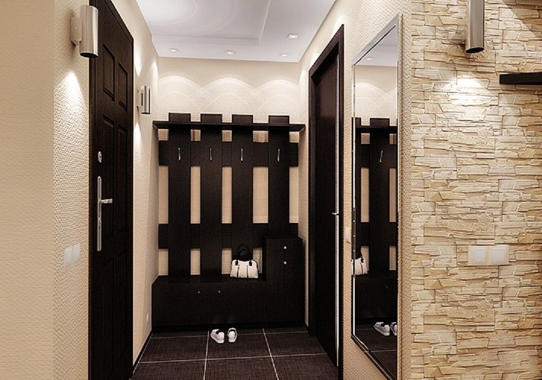 Por lo general, los pasillos de los apartamentos de una habitación son pequeños, por lo que esta habitación no debe arrojar basura. En el pasillo, debe colocar un estante para ropa de abrigo o colocar una percha con ganchos y un estante para sombreros en la pared. Además, al lado de la puerta principal, debe instalar un zapatero de madera. Si las dimensiones del pasillo lo permiten, puede montar un armario con espejo. En el pasillo debe colgar un espejo ordinario o un estante para cosas pequeñas (llaves, tarjetas de visita, relojes, etc.).Para el diseño de salas pequeñas, es mejor elegir colores claros, porque sombras demasiado oscuras visualmente hacen que la habitación sea aún más pequeña. También en el pasillo debe poner una alfombra de la puerta. Se necesita con cualquier revestimiento de piso, ya que recogerá toda la suciedad de los zapatos de la calle, evitando que caiga en otras habitaciones del apartamento.