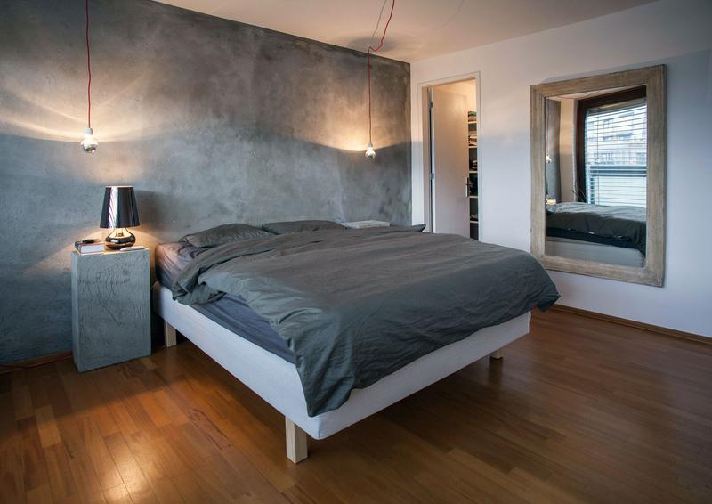La disposición del área para dormir depende del tamaño del apartamento y la habitación. En habitaciones pequeñas tendrá que limitarse a un sofá plegable, ya que una cama doble con un colchón ortopédico "comerá" demasiada área utilizable. En habitaciones grandes será posible hacer una habitación clásica.Si hay nichos, entonces la cama se puede instalar allí. Para zonificación adicional, es mejor hacer un pequeño podio para indicar con precisión la ubicación de la cama. Todo tipo de pantallas no son típicas para el interior masculino, por lo que no es necesario vallar el área para dormir. Debe resaltarse con color. Para la iluminación, son adecuados los apliques de pared con bombillas mate. Se debe colocar una mesita de noche junto a la cama para poder colocar el control remoto del televisor o reservar antes de acostarse sin levantarse de la cama.