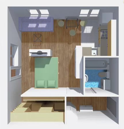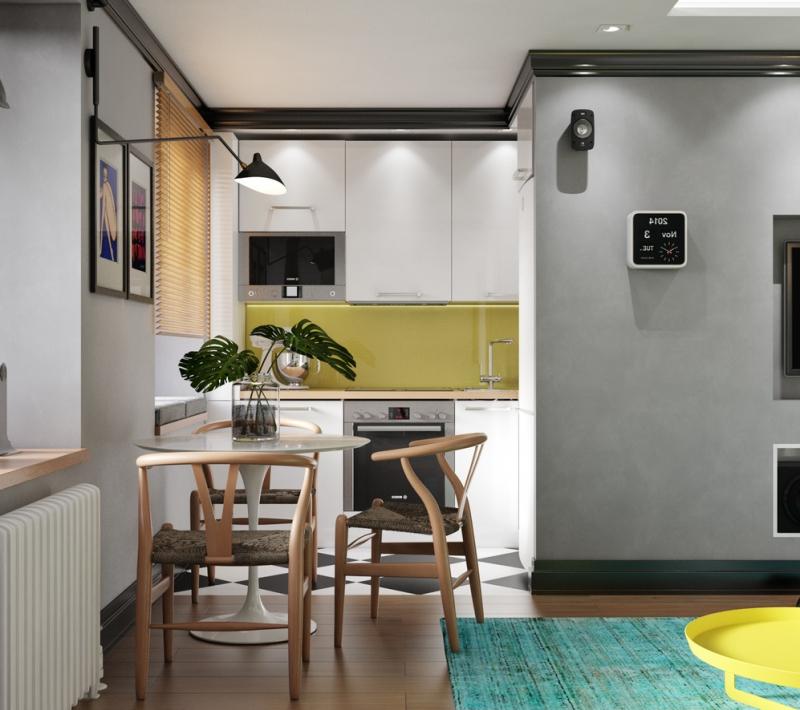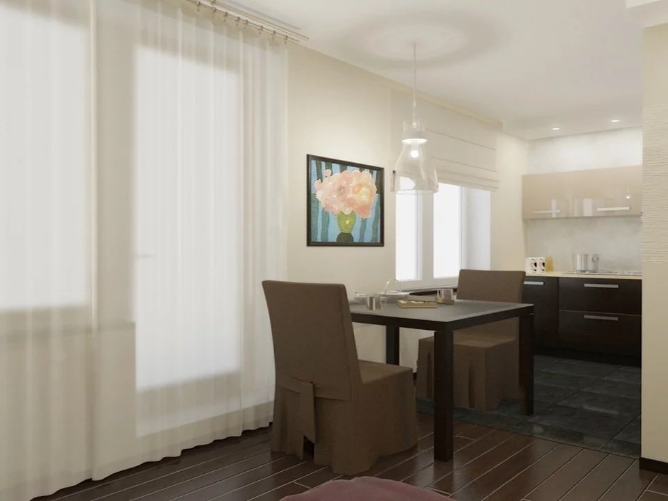 La mini mejora prácticamente no es diferente de los apartamentos estándar en edificios de nueve pisos, con una excepción: el tamaño pequeño de la cocina (5.5 metros cuadrados).Es esta falla la que la mayoría de los propietarios intentan solucionar. Como regla general, en tales apartamentos hay una despensa y un baño separado. Para aumentar el área útil de la cocina, es necesario mover el baño y el inodoro utilizando el área de la despensa anterior. También puedes combinar el baño. Si la mini mejora tiene un balcón o una logia, se pueden combinar con una sala de estar como oficina o con una cocina, que se utiliza como comedor.