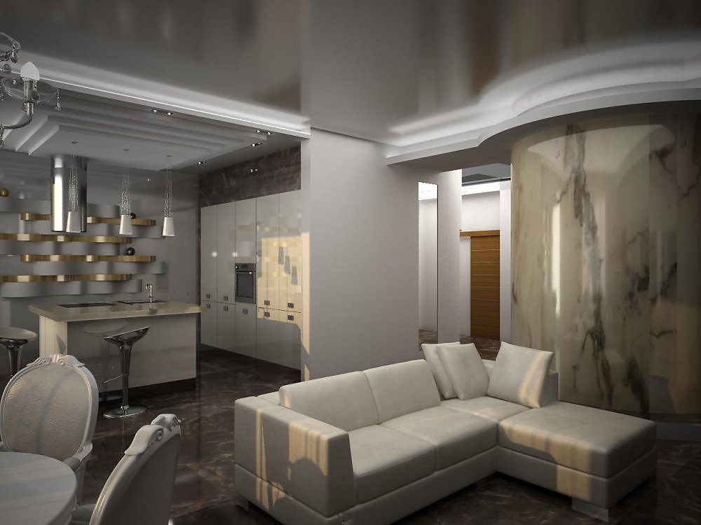 Combinando la cocina con otras habitaciones en el estudio, si hay una estufa de gas.Según las normas, en aquellos apartamentos donde se conduce gas, la presencia de puertas interiores es obligatoria. Una habitación bien cerrada puede salvar la vida de los residentes durante una fuga.