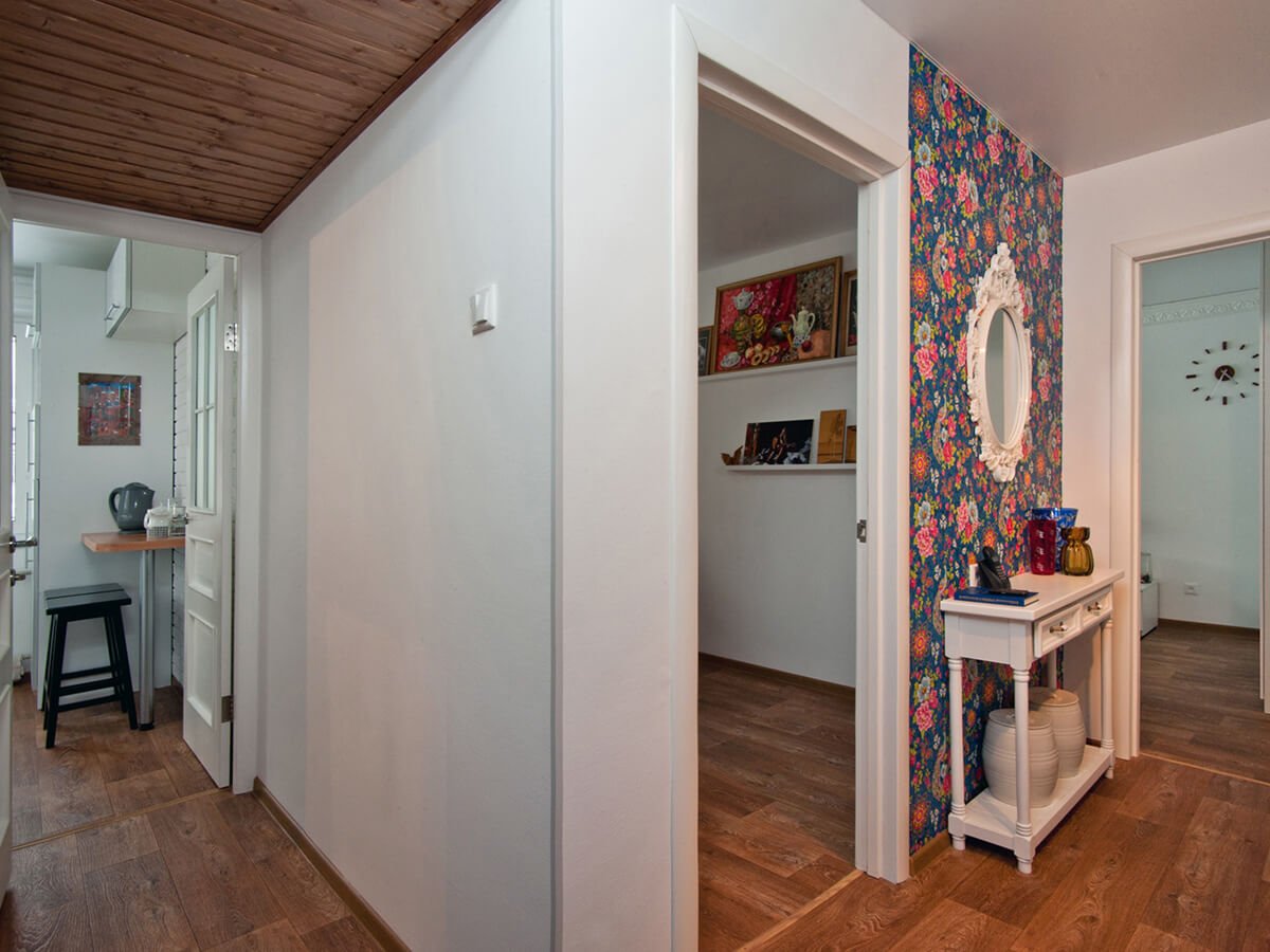 El "libro" de Jruschovka recibió su nombre debido a la similitud externa del diseño del apartamento con una publicación abierta. Los locales en viviendas de dos habitaciones están ubicados en una línea y están interconectados por puertas. Una habitación se convierte en un punto de control. Por lo general, se utiliza como sala. A los lados hay un dormitorio y una cocina con baño y pasillo.Como regla general, estos apartamentos tienen un balcón o una logia (generalmente ubicados en el pasillo). Este tipo de diseño se considera el más infructuoso. Rehacer cualquier cosa en el "libro" es muy problemático. Lo único con lo que los propietarios pueden contar es con la demolición parcial de las paredes entre el pasillo y el pasillo. El corredor ampliado conduce a las puertas de la sala de estar y el dormitorio, dejando el mensaje a la cocina intacto. Anteriormente se limpian las entradas existentes desde la sala. Así se deshacen de la sala de paso y aíslan cada habitación, pero al mismo tiempo sacrifican un área pequeña de la sala. También cumple con otra opción, que consume más tiempo. Se demuele una pared entre la cocina y la sala de estar, combinando los dos espacios en un estudio, mientras que el área del pasillo se reduce, como en la versión anterior. En este pequeño callejón sin salida es conveniente equipar una despensa o vestidor.