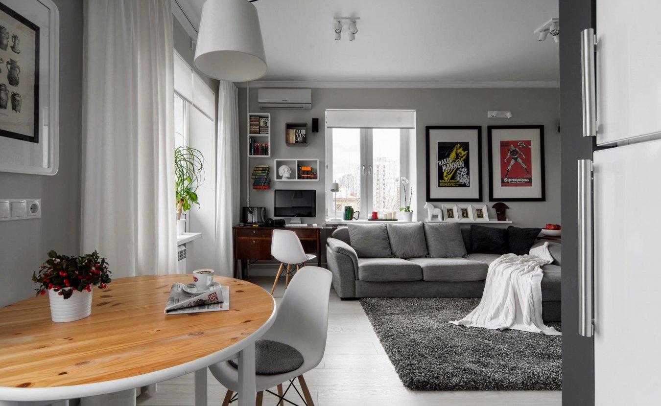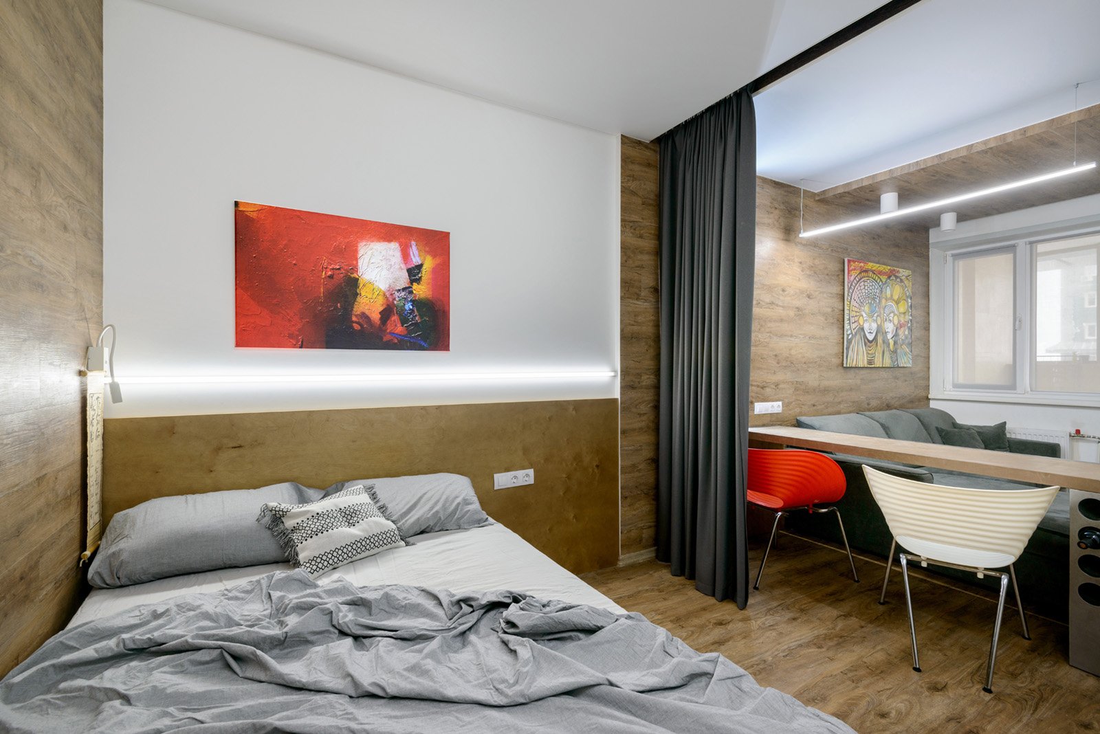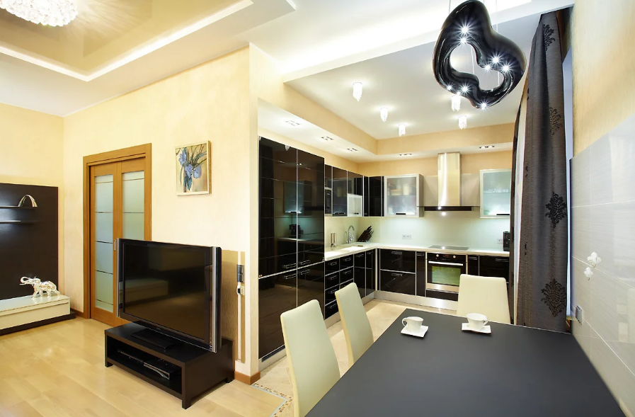 Una de las opciones de remodelación más populares consiste en combinar una cocina, un dormitorio y un pasillo en una sola habitación. Este modelo de espacio es adecuado tanto para personas solteras como para familias con niños. Para una estadía cómoda en el segundo caso, es necesario considerar formas de zonificación competentes.
