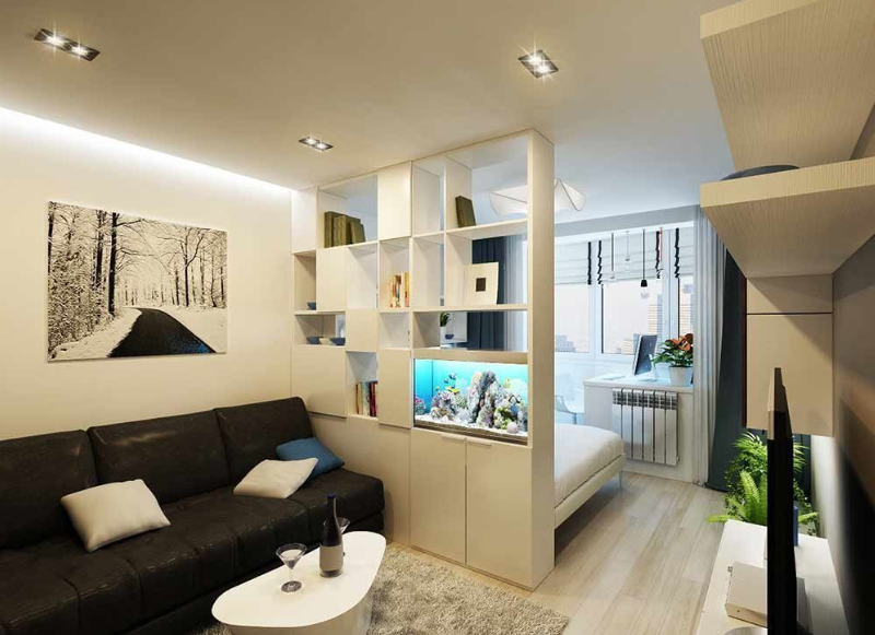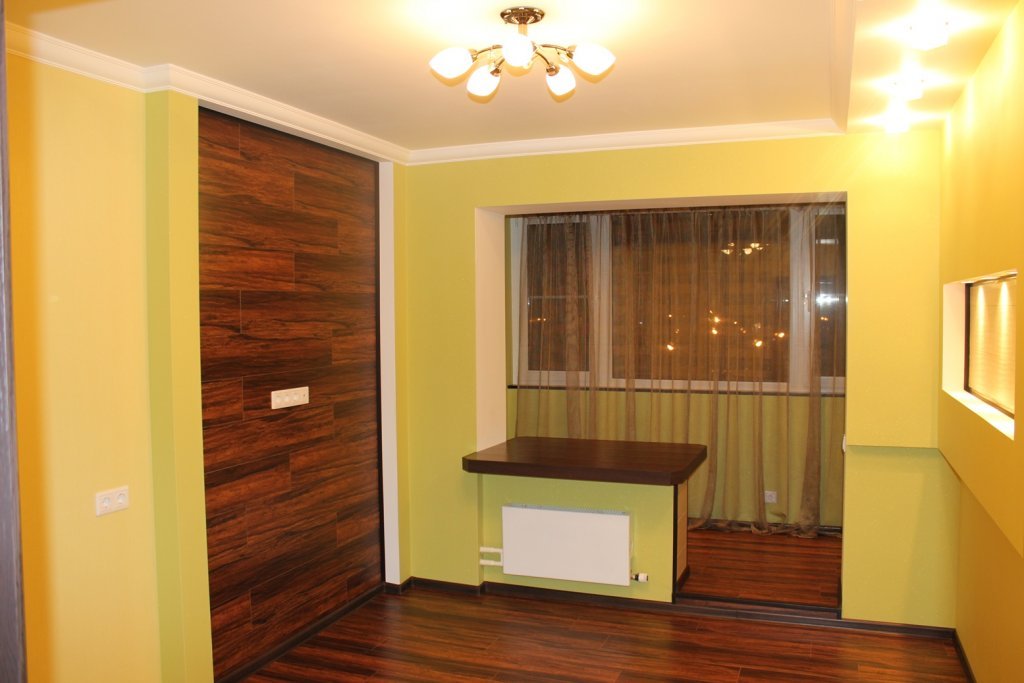 La razón principal que empuja a los propietarios de dichos apartamentos para la reurbanización es la falta de espacio. Incluso un par de medidores adicionales pueden salvar una situación crítica. Puede mejorar la geometría de la habitación combinándola con un balcón. Dicha fusión proporcionará a los locales nuevas características. Una amplia ventana puede acomodar un escritorio, un sillón. Si planea equipar una zona para niños, el espacio desocupado se puede usar para guardarropa o estantería.