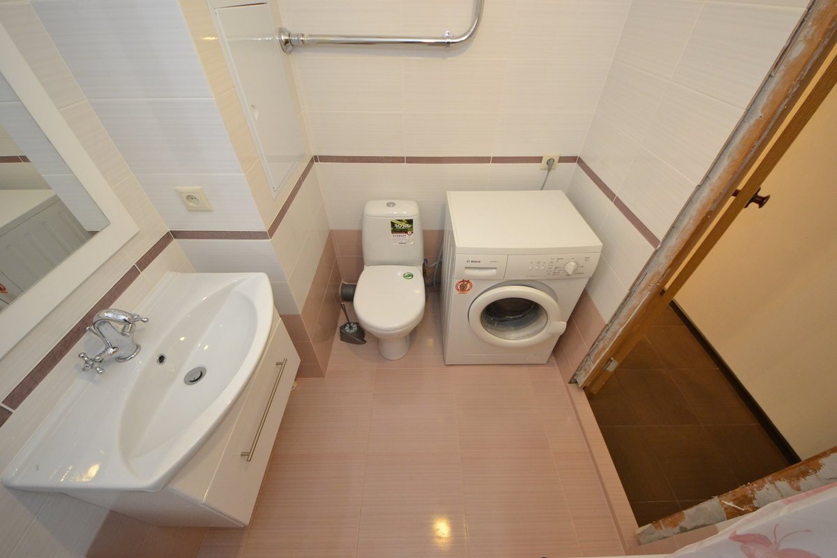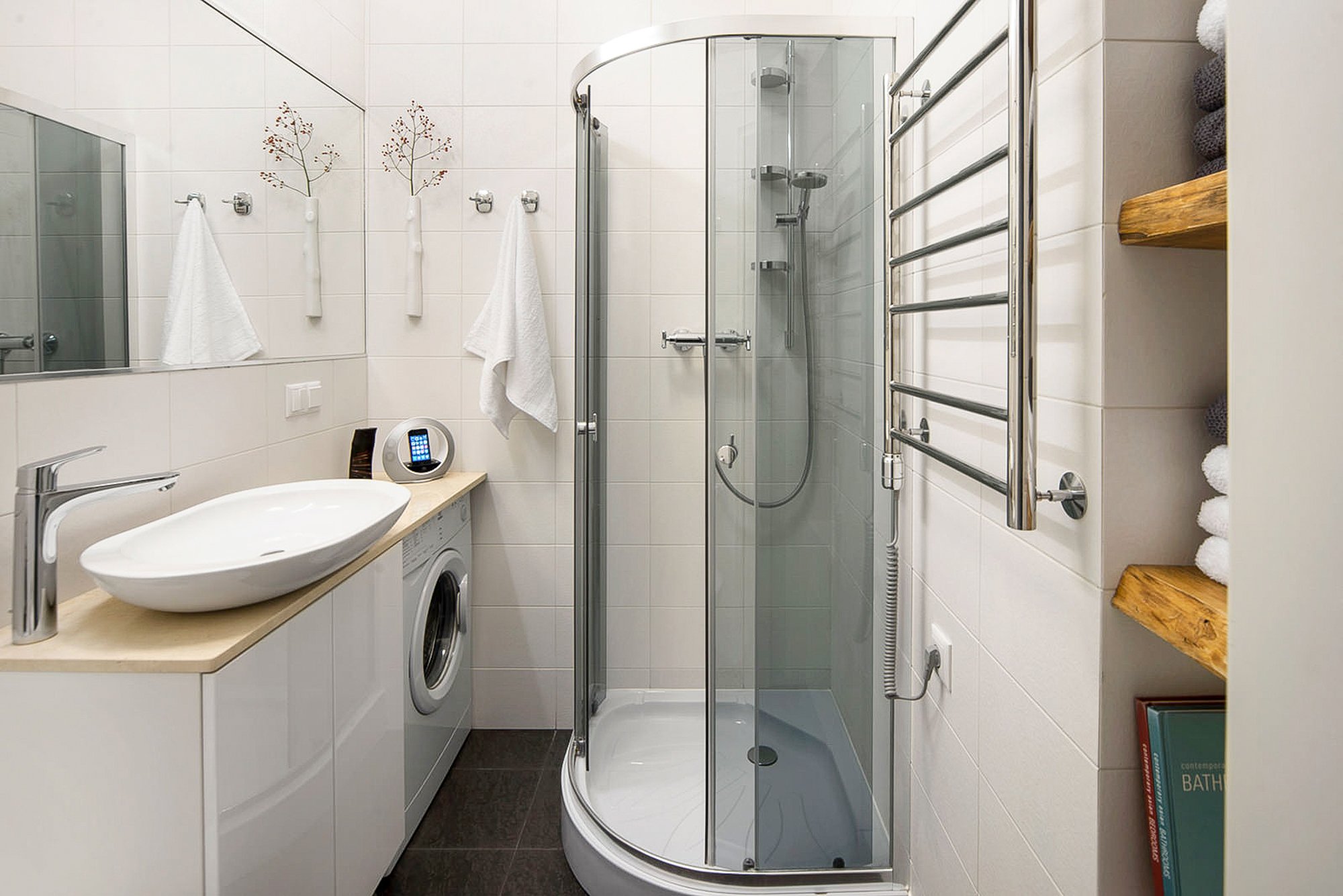 Un baño separado en Odnushka ocupa una gran cantidad de área valiosa de habitaciones importantes. En un baño en miniatura es imposible dar la vuelta para dos personas, sin mencionar la colocación de una lavadora, una canasta para la ropa sucia. Los artículos enumerados caerán fácilmente en su lugar si combina el baño con el inodoro, eliminando la amplia partición.