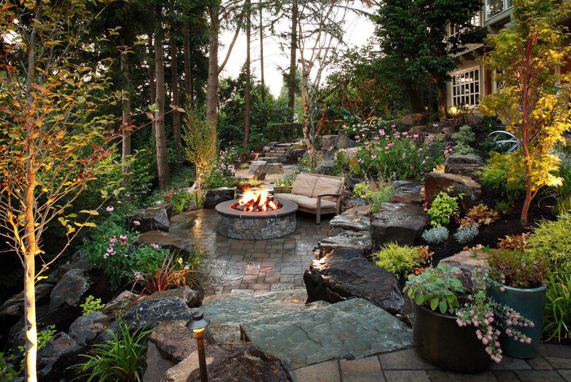 El granito se usa en combinación con coníferas, arbustos de brezo.