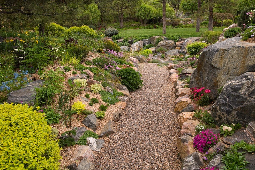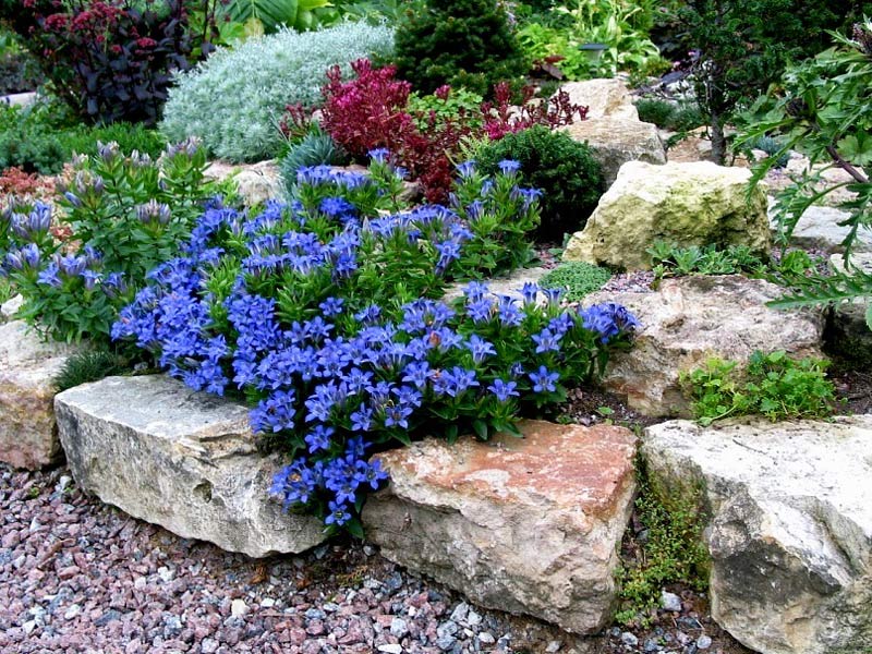 El jardín de rocas clásico está poblado por plantas características de laderas rocosas, prados alpinos y altas montañas.