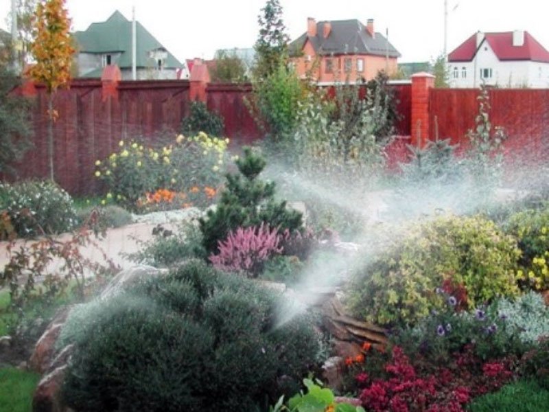 Si el sustrato se prepara adecuadamente, se realiza el acolchado, entonces el jardín de flores se riega solo en el período seco. El mantillo retiene la humedad, rocía una vez al año.El agua fría es adecuada para la flora alpina, el jardín de flores y las plantas de interior, como el riego cálido. Facilitar el cuidado del riego por goteo en jardines de rocas. El sistema de riego se monta rápidamente con sus propias manos a partir de kits confeccionados. El kit consiste en microhospes con goteros, a través de los cuales el agua fluye desde el tanque de almacenamiento hasta las raíces. Se desarrollan mejor, mejora la apariencia de las coníferas, se fortalece la inmunidad de las plántulas. Con el riego por goteo, no se forma una costra, no hay evaporación mejorada, lo que es perjudicial para las plantas con flores. La unidad de control puede ajustar el volumen de agua descargada.