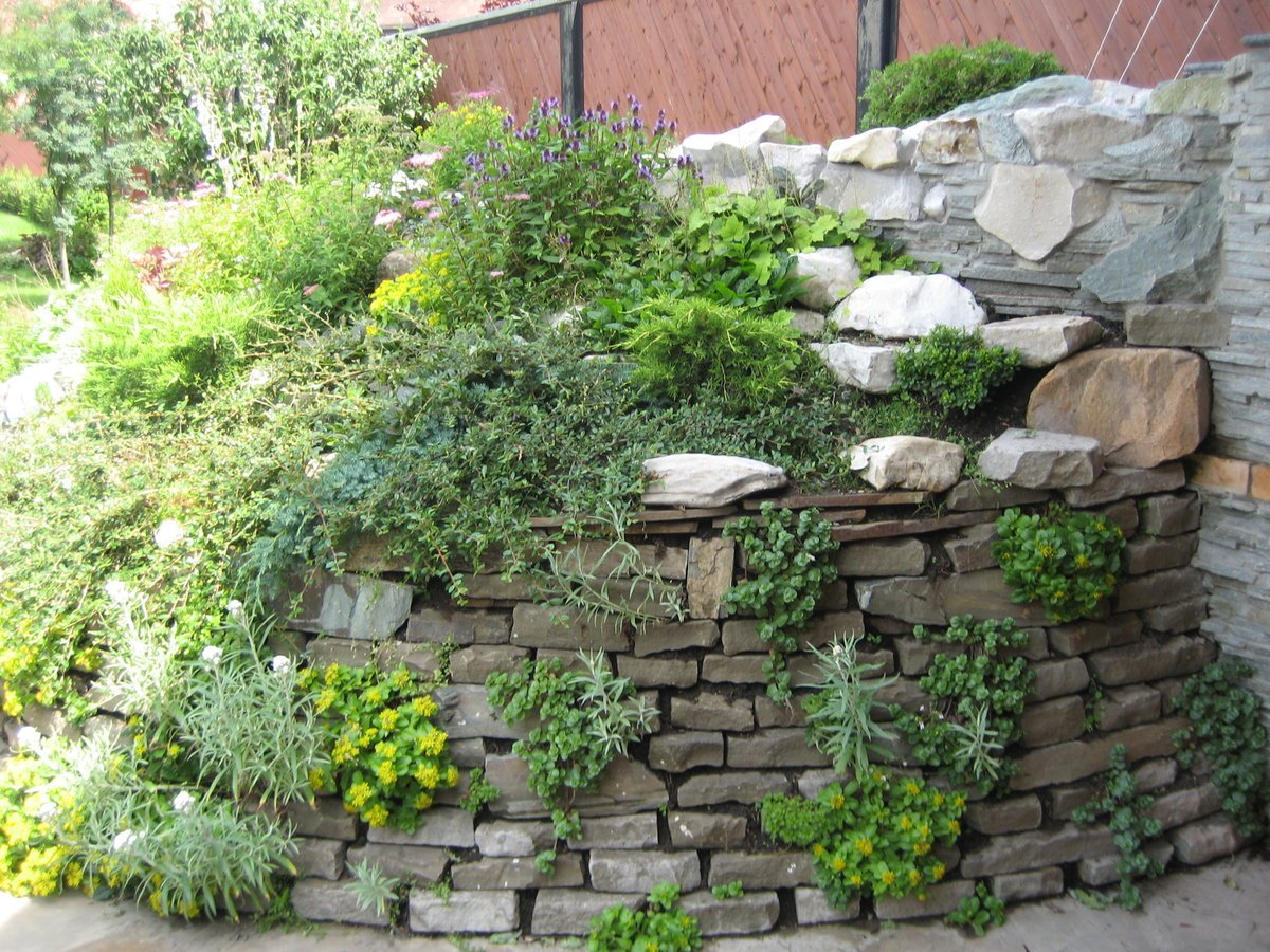 Utilizado en la construcción de pendientes en terrazas. Las flores y los enebros se plantan en nichos y huecos que quedan en la mampostería y se llenan de tierra.
