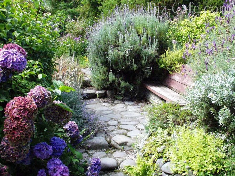 La abundancia de hierbas y flores se puede complementar con una fuente o un pequeño estanque.