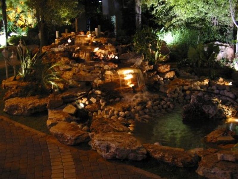 Crean la apariencia de una roca colapsada, el área pintoresca está decorada con basalto, toba, el área en la base está decorada con perlita, grava fina