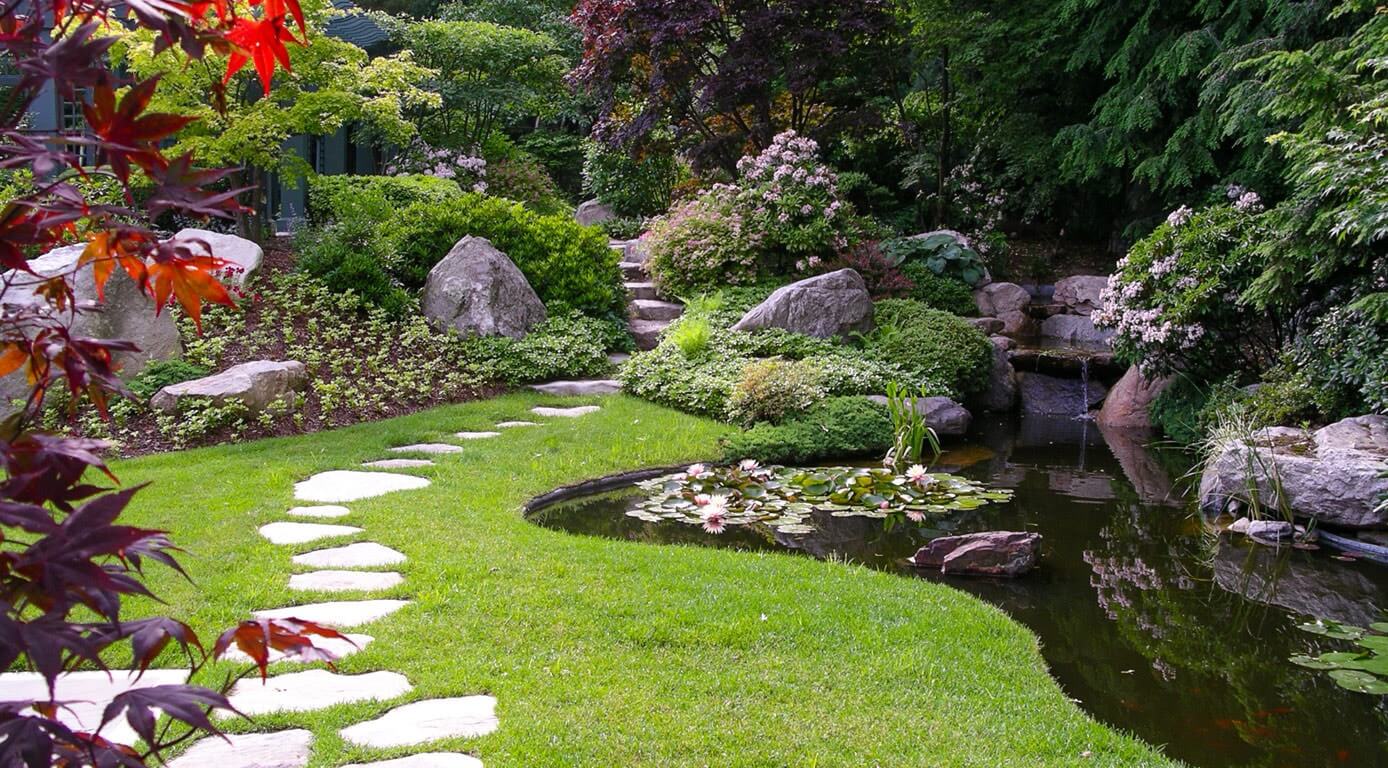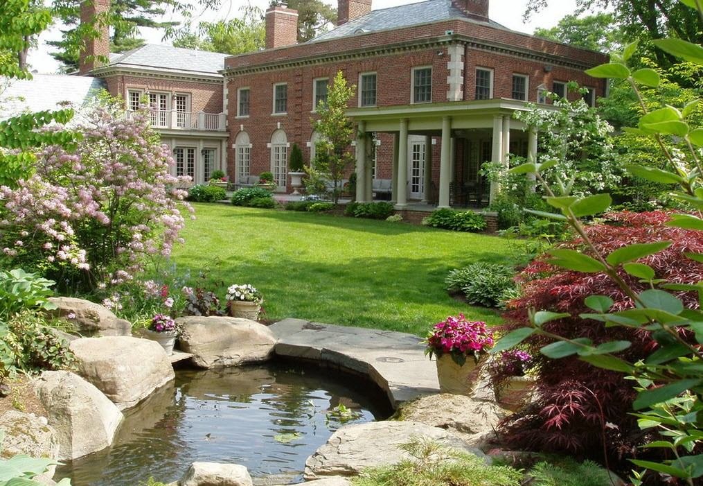Estanques de paisaje.Por supuesto, es deseable que el sitio tenga un estanque o lago natural. Si no hay un depósito, deberá crearse artificialmente, pero de forma que sea lo más similar posible al real.