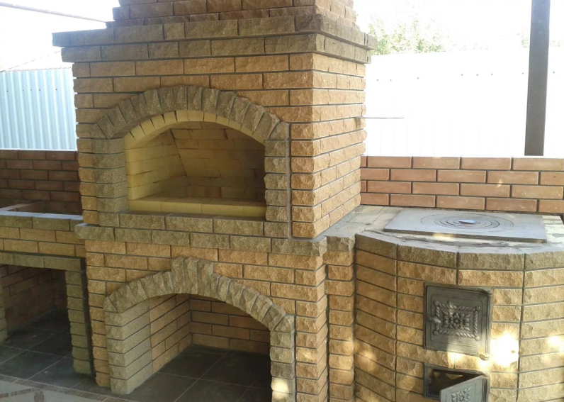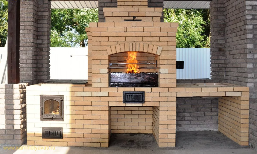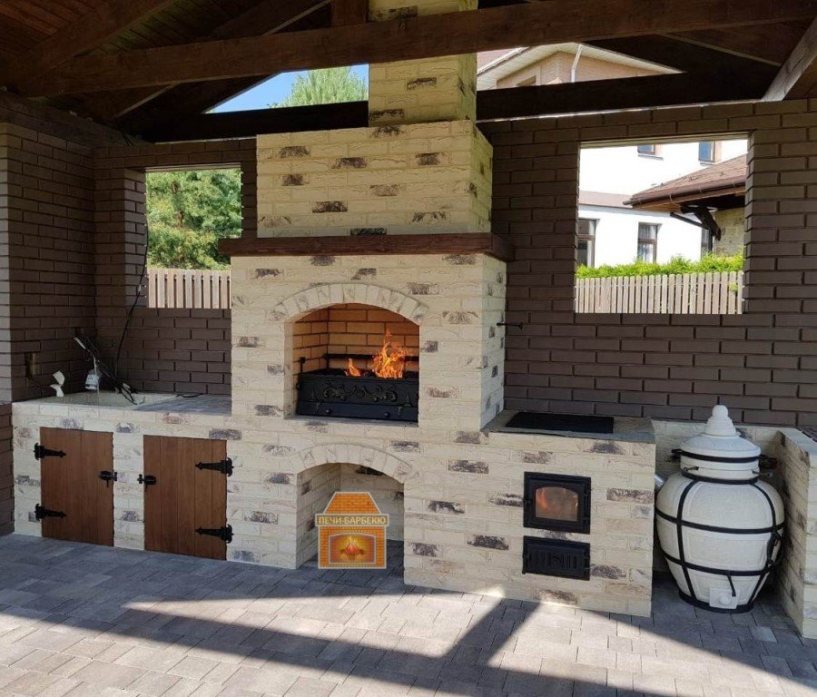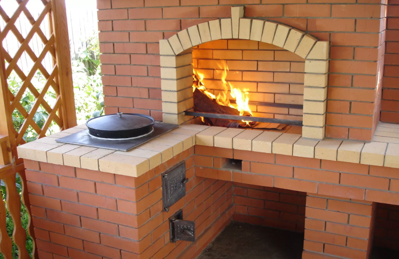 Para belleza y cocina. Se complementa con barbacoa, barbacoa, asadera. La mayoría de los propietarios de sitios eligen este modelo de horno para cenadores.Puedes disfrutar de las llamas crepitantes y cocinar al mismo tiempo.