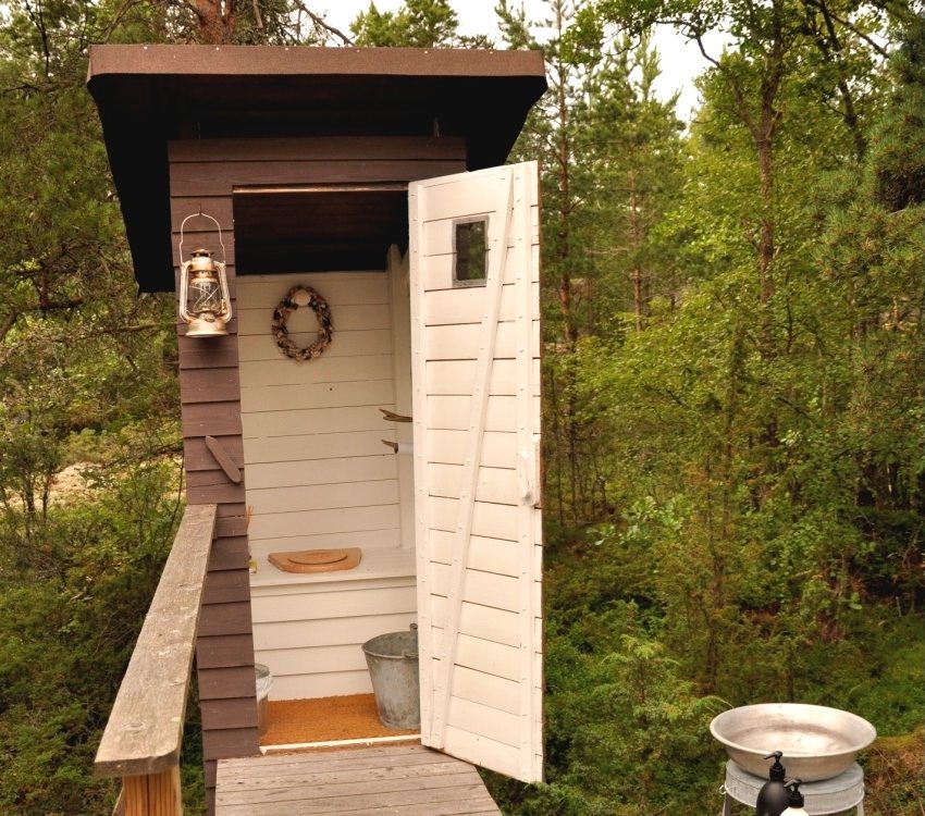 Primitivo, a primera vista, el diseño del inodoro se puede atribuir a las instalaciones obligatorias en el área suburbana. Es muy difícil explotar completamente el territorio terrestre sin una zona de confort integral. Cree un proyecto de baño personal en primer lugar. Es poco probable que pueda hacer un baño casero real con sus propias manos en madera, pero es muy posible proporcionar la mínima comodidad con un proceso de trabajo y recreación al aire libre.