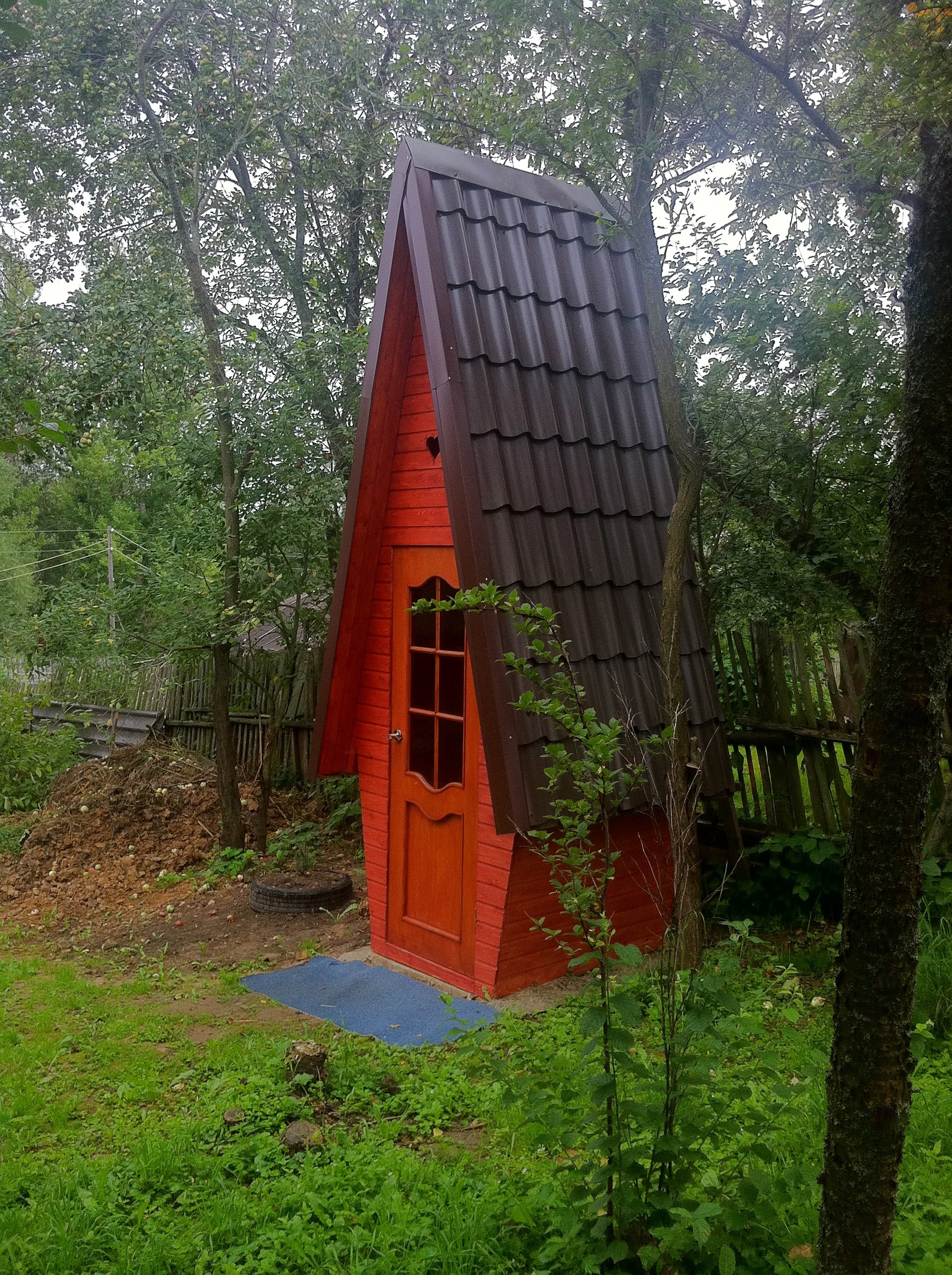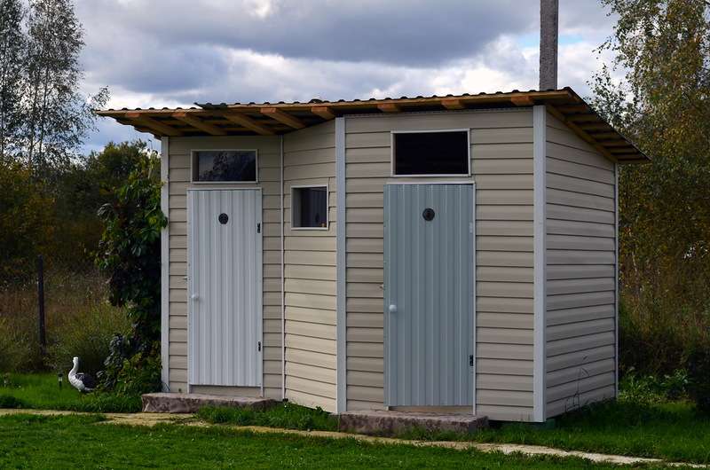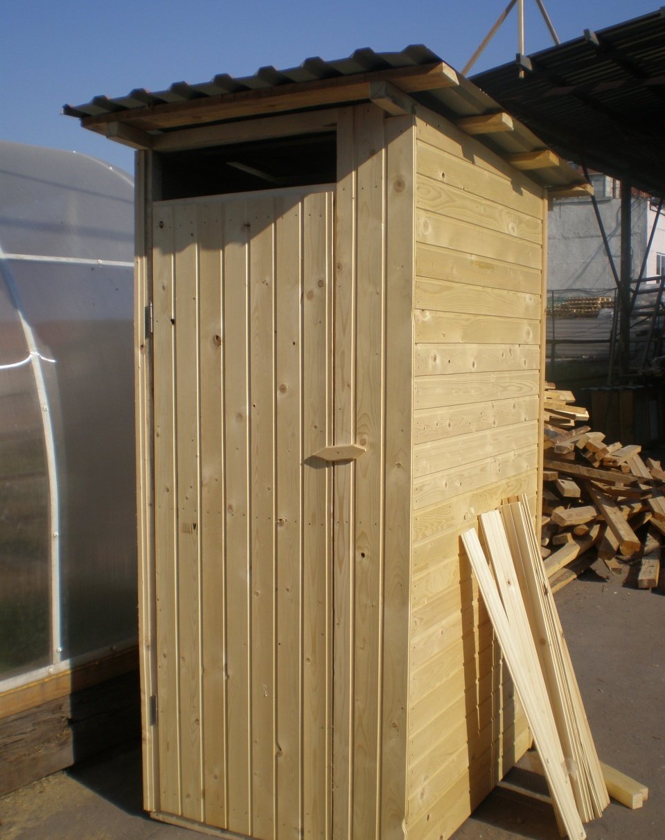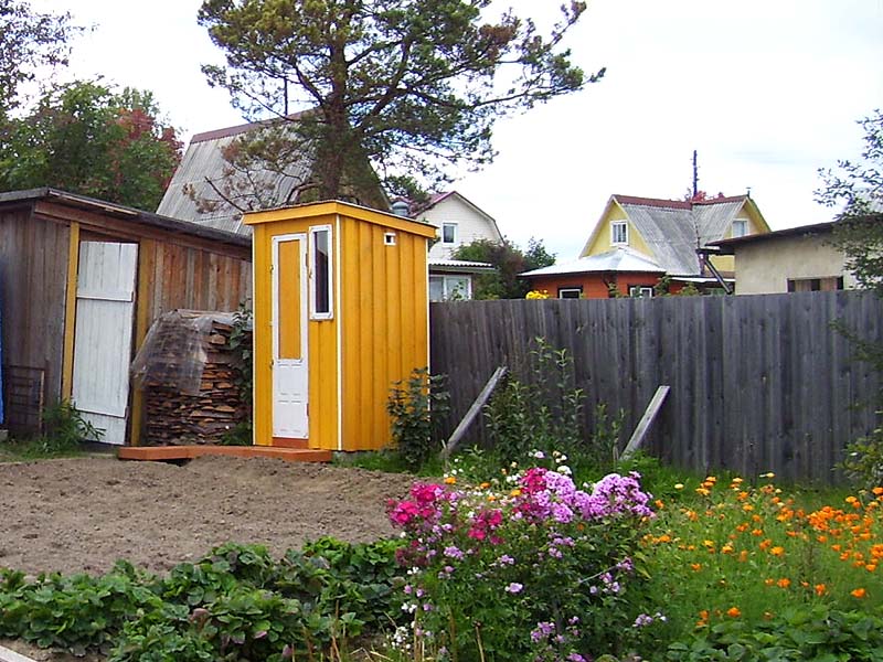 Una asignación de campo, una casa de verano no funcionará sin un edificio tan importante como un armario. Inicialmente, puede construir una estructura temporal a partir de materiales improvisados, y luego hacer un baño importante. Dependiendo de la frecuencia de uso del edificio, se selecciona su diseño. Al mismo tiempo, los materiales de construcción para el trabajo pueden servir como materias primas, tanto restantes de la construcción principal, como adquiridos especialmente.