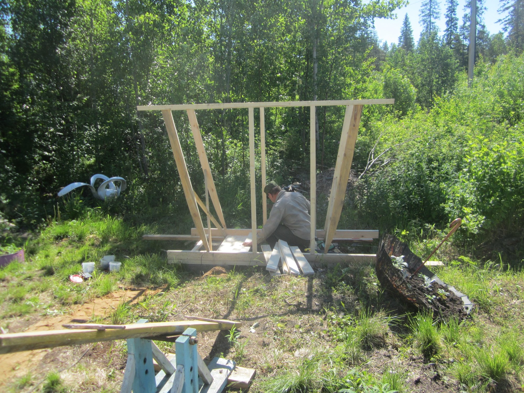Después de organizar la unidad, comienzan a instalar la base y ensamblar el marco. Si planea usar el baño en invierno, la base debe llenarse por debajo del nivel de congelación. Para que la madera no entre en contacto con el concreto, está separada por un piso del material del techo.