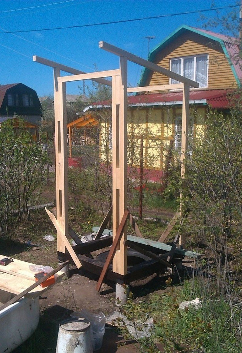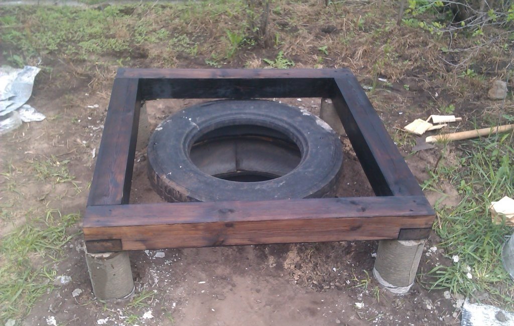 Los pozos se hacen en una superficie previamente marcada y se insertan columnas de soporte. Para un marco de madera, es mejor usar una viga, paletas especiales dimensionadas previamente. Desde el interior, se fortalece con tirantes, bufandas. Según el tipo de asiento del inodoro, las barras longitudinales se clavan a cierta altura, lo que servirá de base.