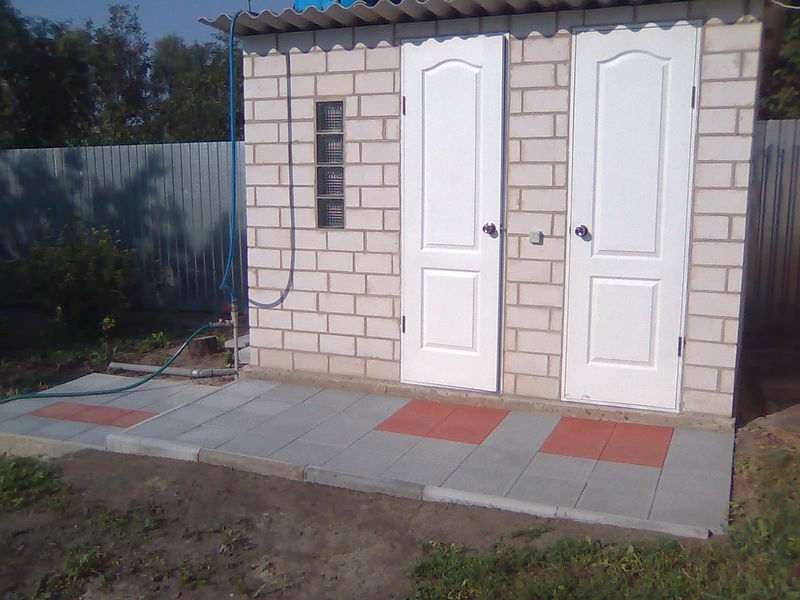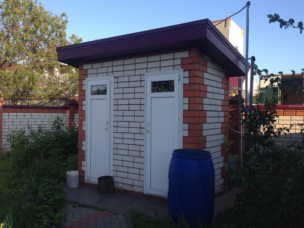 La construcción de dicho material no teme a los desastres climáticos. El inodoro de ladrillo no necesita procesamiento externo adicional, rara vez se repara. La base y el techo de dicho edificio también deben estar hechos de materiales duros. La base se vierte con hormigón, pizarra y se utilizan láminas de metal para el recubrimiento.