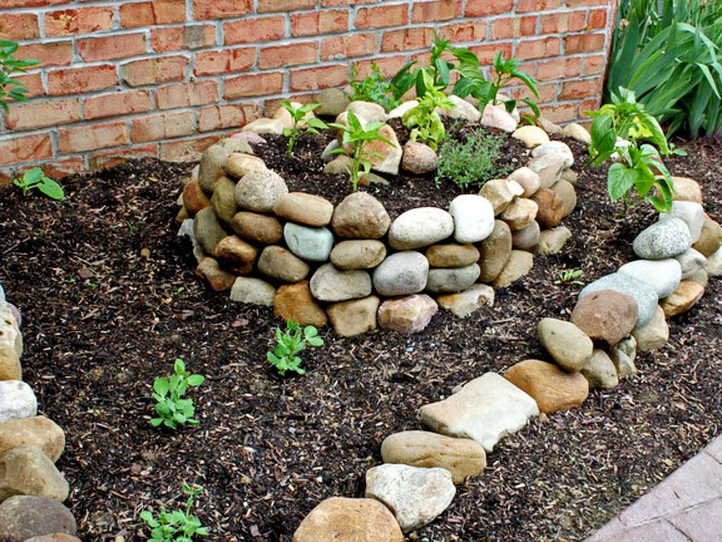 Otro material natural que siempre estará en el jardín es la piedra. Para su uso en la decoración, tome piedras, grava, piedra triturada, granito, arenisca. Adoquines elementales inusuales pueden convertirse en un acento en el diseño de una colina alpina u otra parte del jardín.