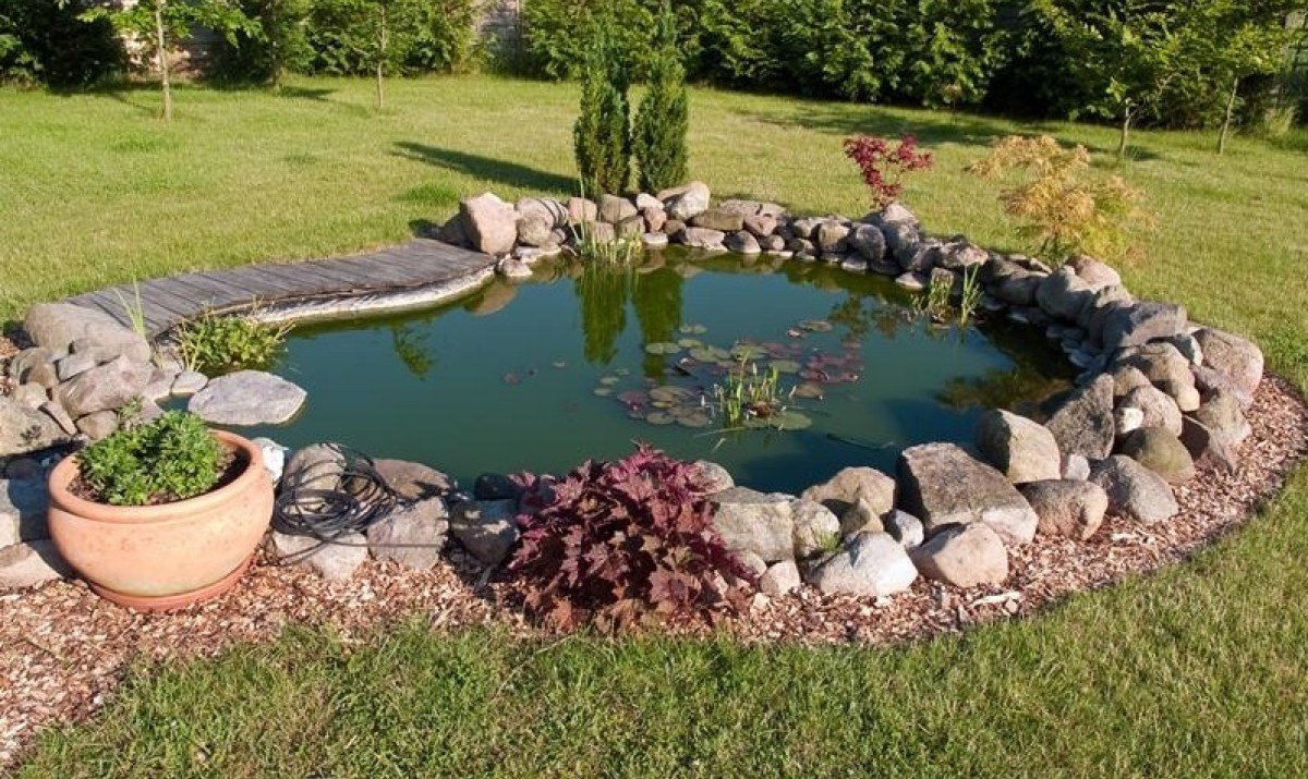 Los depósitos artificiales, que son una parte integral de un jardín completo, merecen especial atención. Los materiales naturales y artificiales, principalmente piedras, a menudo se usan para la decoración. Pueden marcar los límites del estanque y alinear el fondo. También se necesitan piedras o baldosas para proteger el estanque del derramamiento de tierra. Si hay un tobogán alpino cerca de un depósito decorativo en las inmediaciones, la imagen general solo ganará.