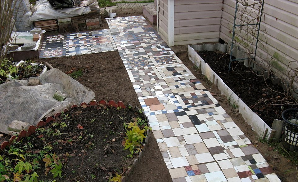 La cerámica es conveniente ya que no solo el material sólido, sino también sus fragmentos son útiles para decorar el jardín. Si tiene un matrimonio o desperdicio después de estar frente al baño o la chimenea, no se apresure a tirarlo. De los fragmentos de baldosas cerámicas puede colocar adornos muy interesantes y decorarlos con senderos de jardín, macetas grandes, cubrir fuentes decorativas y estanques.