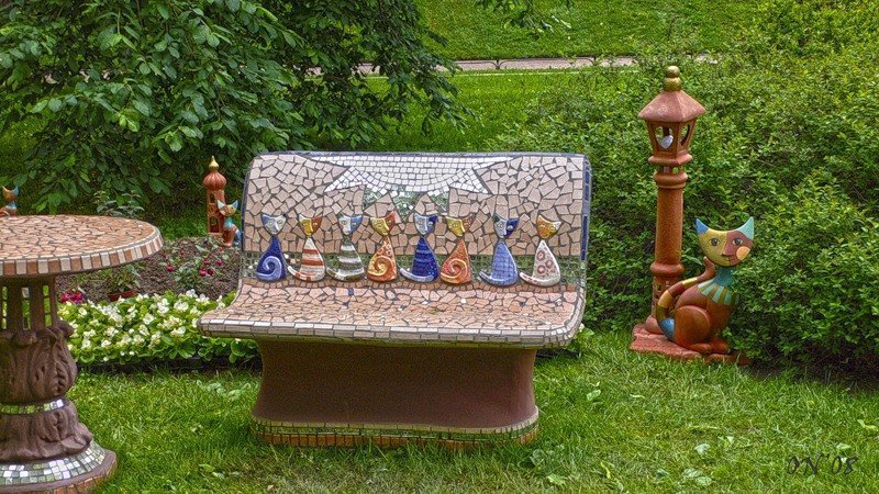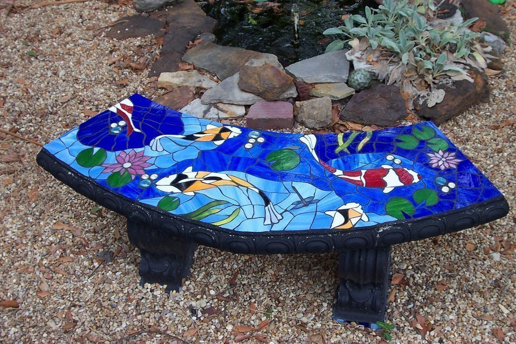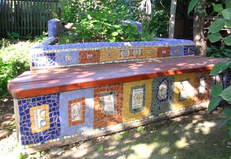 Las baldosas cerámicas de varios tamaños y todo tipo de tonos han encontrado una amplia aplicación en la decoración de jardines. Los azulejos se pueden usar para hacer caminos, se usan como revestimientos para mesas, bancos, parterres.