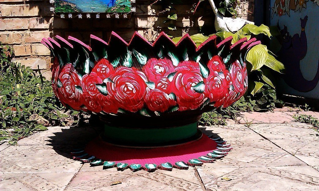 Un cuchillo o una sierra de calar para cortar los pétalos de un futuro cantero deben lubricarse con jabón líquido y luego cortarse suavemente. El proceso que lleva más tiempo es girar el neumático. Si primero apaga al menos un área pequeña del neumático, lo hará mucho más rápido.