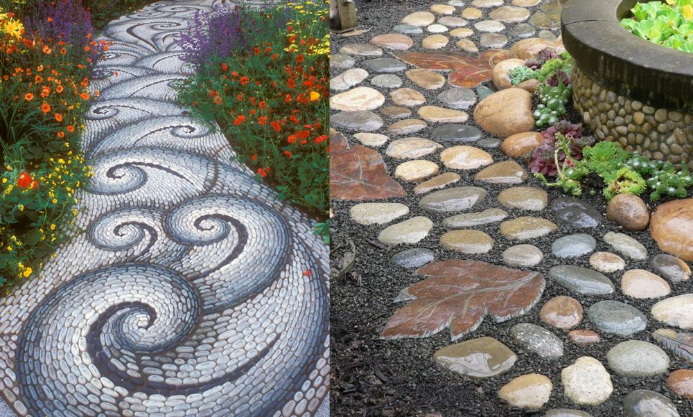 Una de las opciones de presupuesto que se usan con frecuencia para diseñar caminos es con piedra triturada, grava, guijarros, que se vierten en una capa uniforme y se decoran con piedras más grandes en los lados.