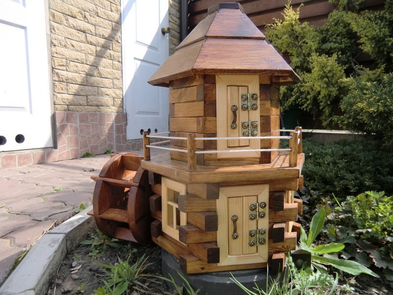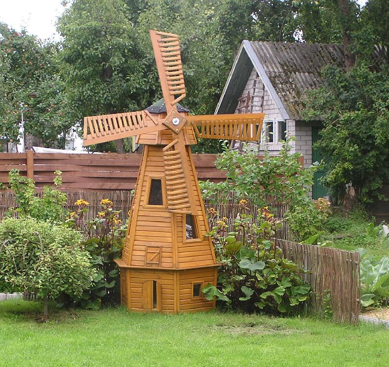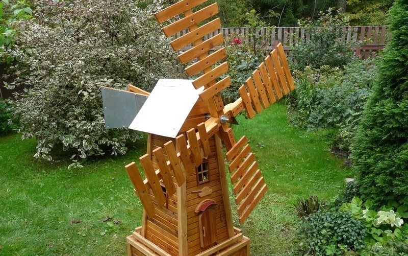 El diseño puede ser no solo una decoración del jardín, sino también una estructura funcional. En forma de molino decorativo, puede organizar: