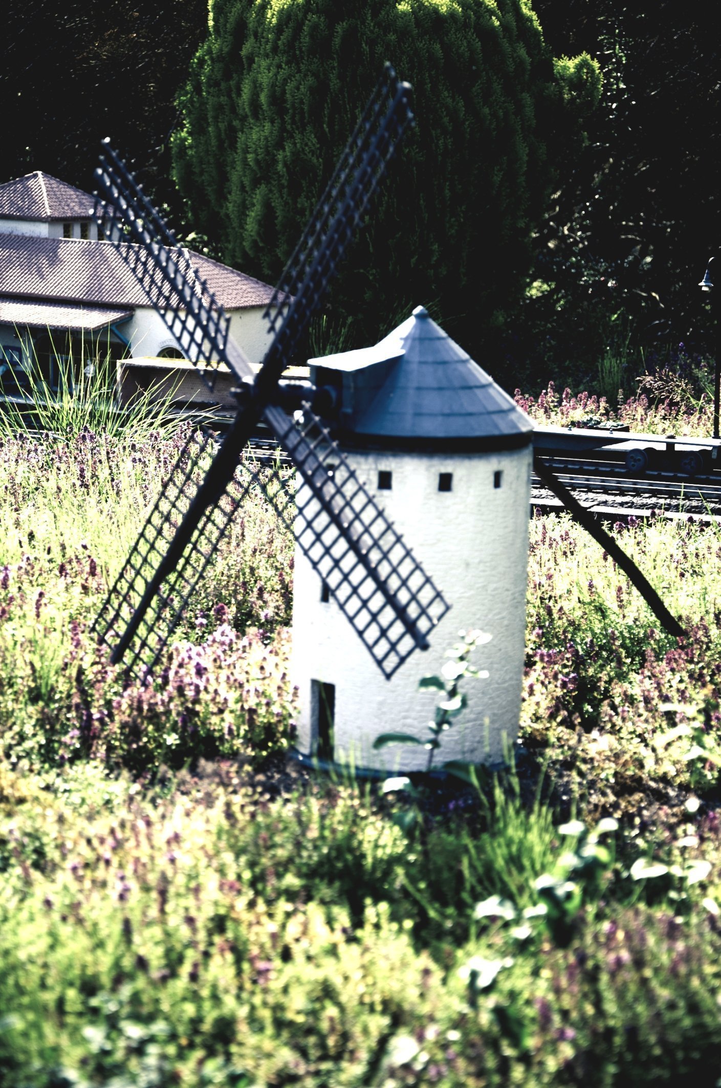 El paisaje natural es apoyado por flores silvestres y arbustos, así como piedras colocadas al azar. Los cultivos de coníferas encajarán idealmente en el jardín junto al molino: tuya, enebro, abeto atrofiado y pino enano. El estanque también representa un campo de actividad: los matorrales de helechos y las hojas de lirio de agua que flotan en la superficie crearán una sensación de prístina.
