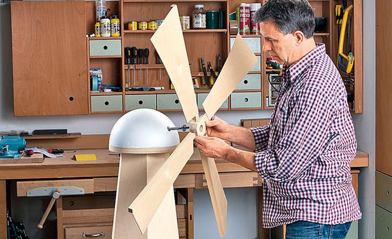 La hélice del molino puede girar o no. En el primer caso, es necesario hacer que la rueda con las cuchillas se mueva y minimizar la fuerza de fricción, luego girará incluso con una pequeña brisa.