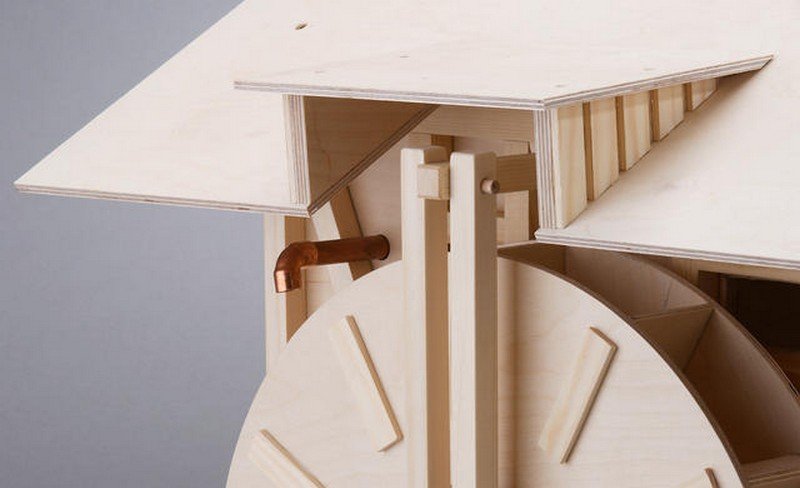 La rueda del molino de agua puede estar hecha de madera contrachapada o madera a prueba de humedad. El diseño consta de dos discos, entre los cuales, con el mismo intervalo, se fijan las cuchillas. En el centro, se perfora un agujero a través del cual se pone la rueda en una horquilla. Cuando el agua entra en los bolsillos entre las cuchillas, toda la estructura girará.