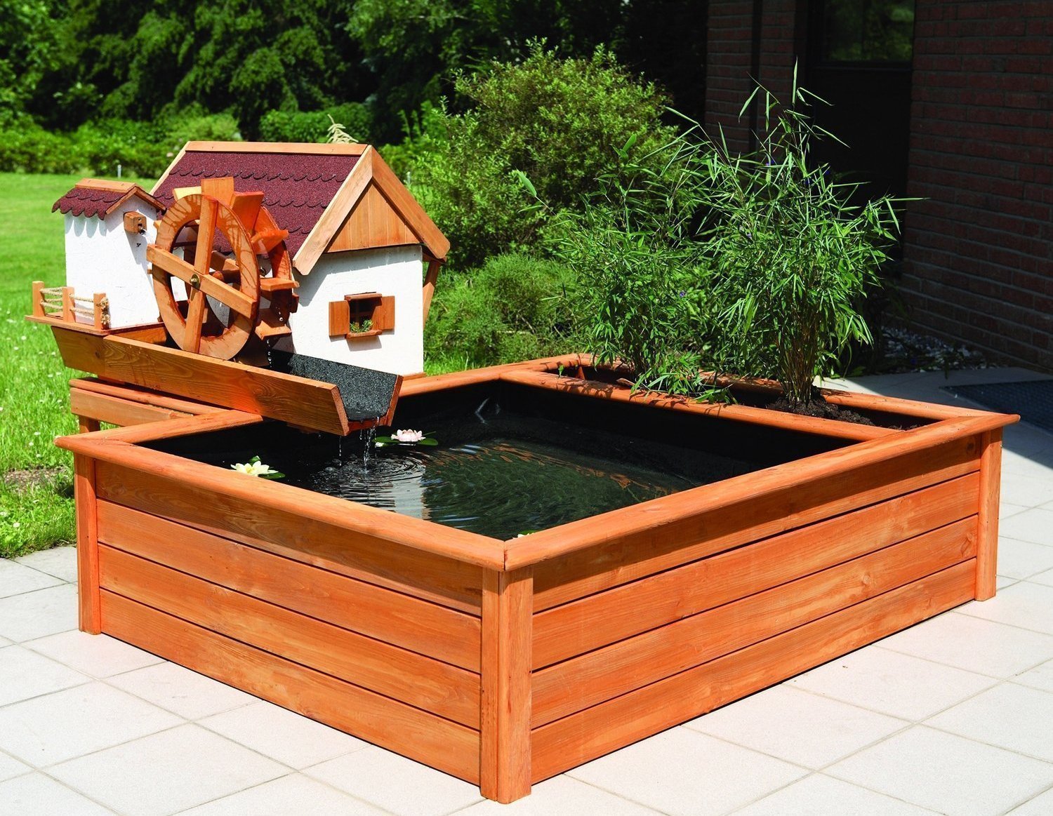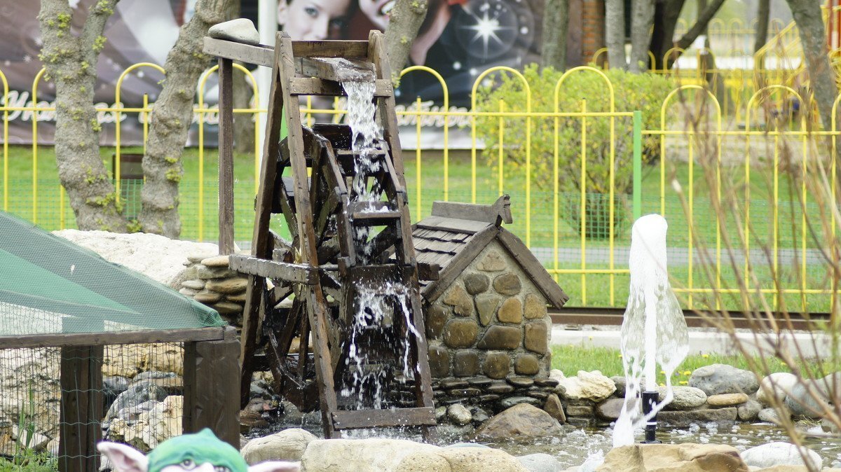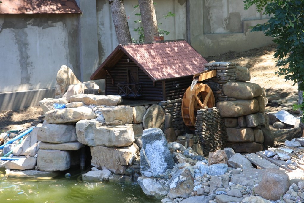 Un lugar ideal para la instalación es un estanque que fluye. Naturalmente, el agua corriente creará una fuerza de torsión constante. Si no hay río o arroyo en el sitio del jardín, y el molino realmente quiere, puede recrear artificialmente la fuerza del arroyo.