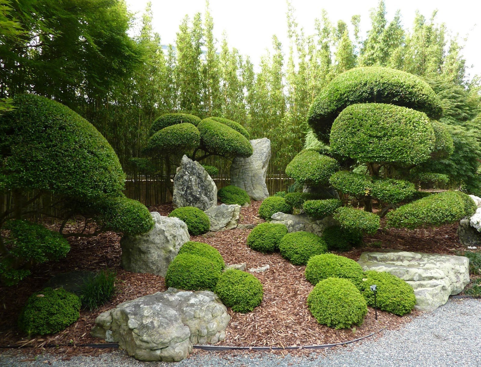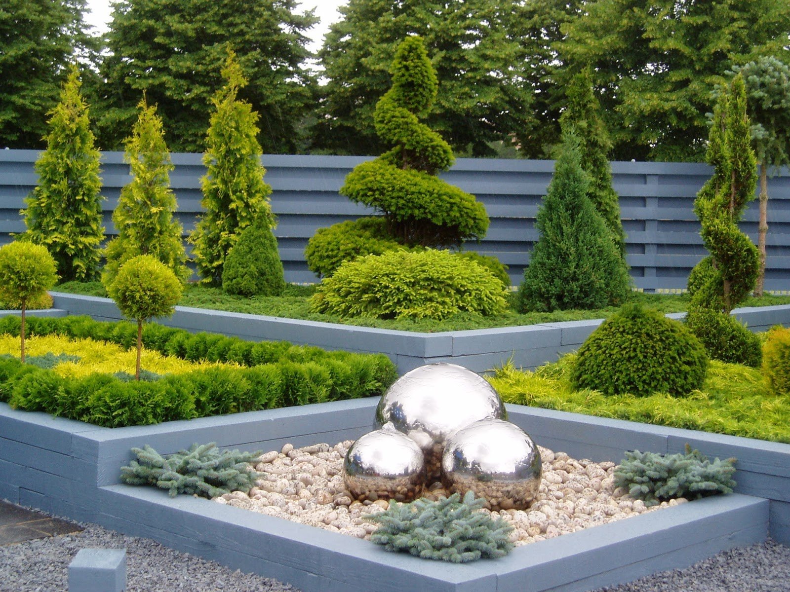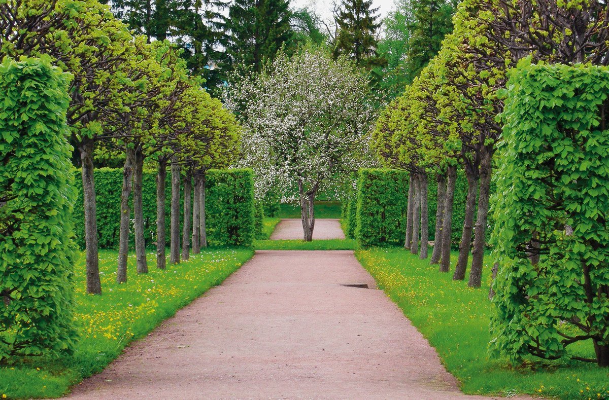 Los árboles están dispuestos en una o dos filas, una por una, de acuerdo con cierto patrón, en grupos de un número impar de representantes de una especie diferente. Puede formar los llamados bosquets: mini-arboledas, que con la ayuda de un corte de pelo se convierten en densas "cercas vivas", usan especies coníferas y caducifolias.