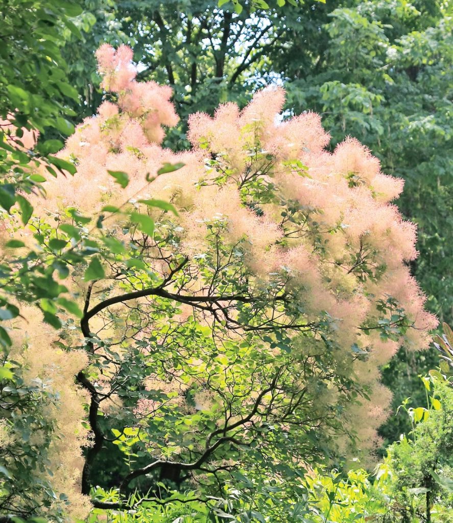 scoopia: crece en tierras fértiles, la altura es de unos tres metros, en verano el follaje es verde, en otoño, naranja amarillento o escarlata burdeos. Flores - blanco-rosa o blanco amarillento;