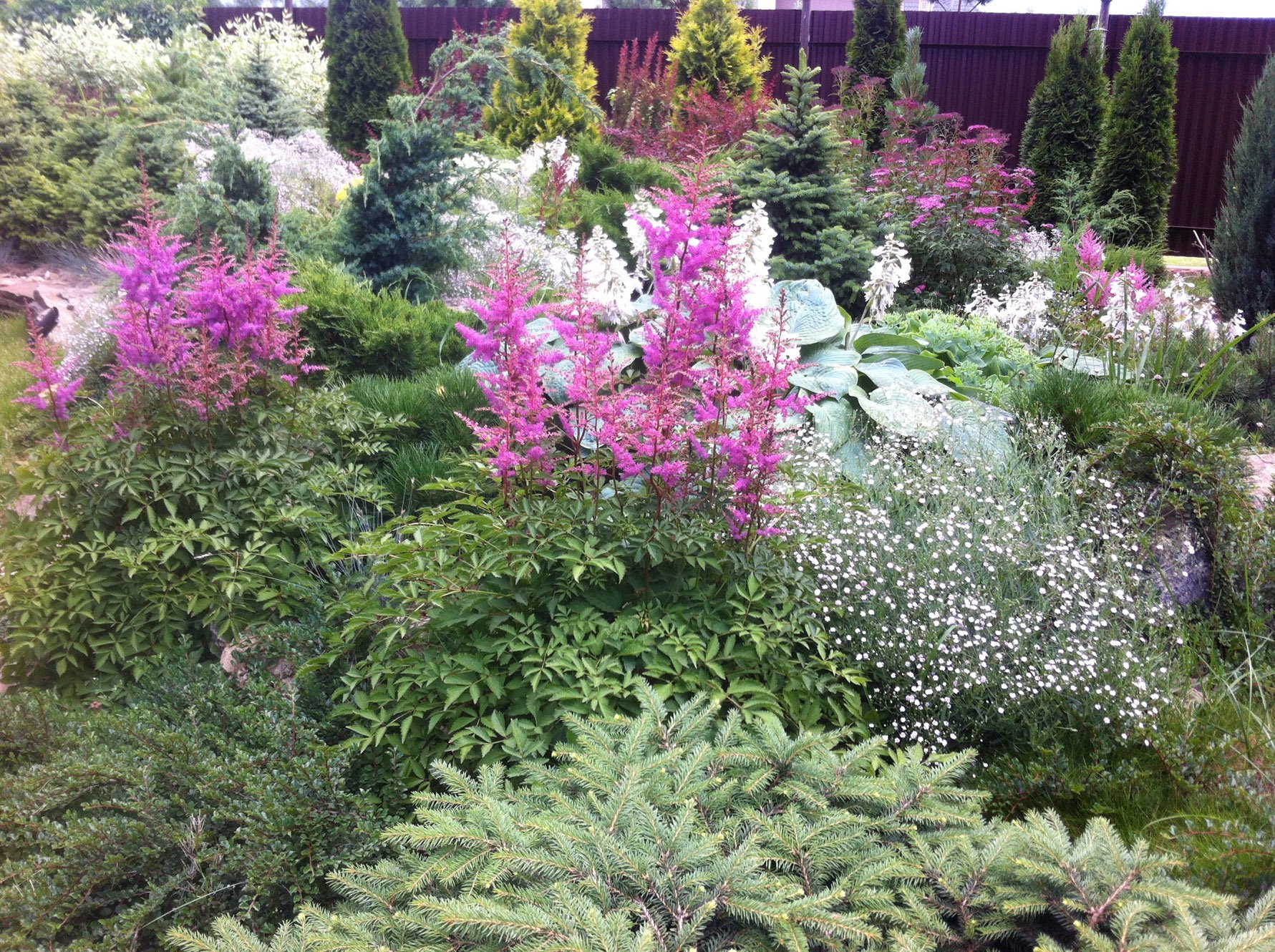 Enebro: crece en lugares bien iluminados o con sombra media, prefiere suelos sueltos, livianos y que absorben la humedad. Tolera mal el anegamiento severo, porque a menudo se planta en laderas, en rocosas y jardines de flores altos. Variedades: chino - tiene un color bronce amarillento, altura de hasta dos metros, horizontal - agujas azuladas, crece hasta 50 cm, escamoso - crece activamente en ancho, altura aproximadamente 30 cm;